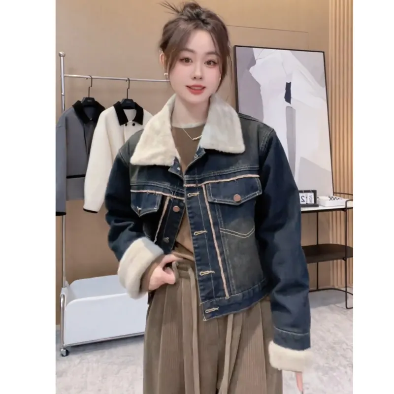 MORii Синий Длинный Sleeved Женские Джинсовые Куртки
