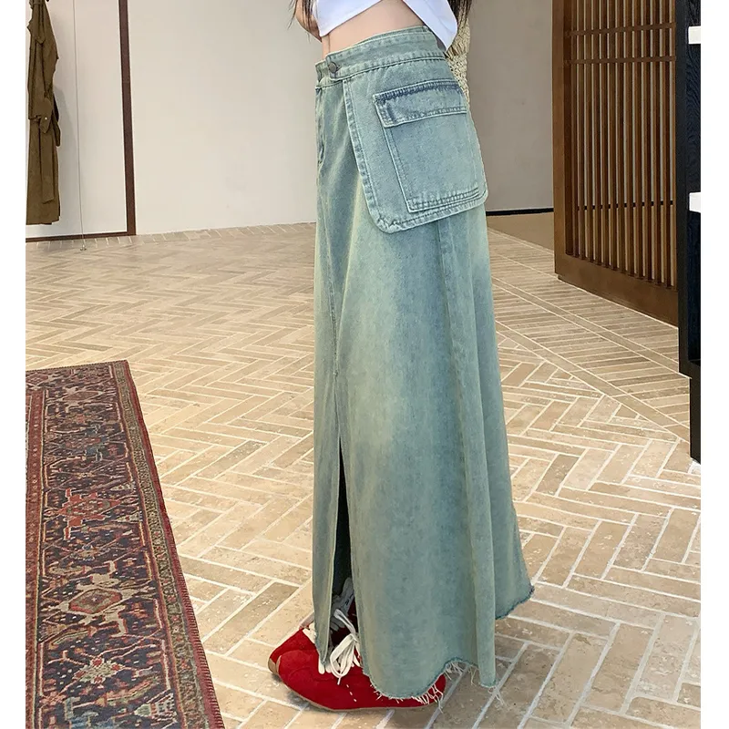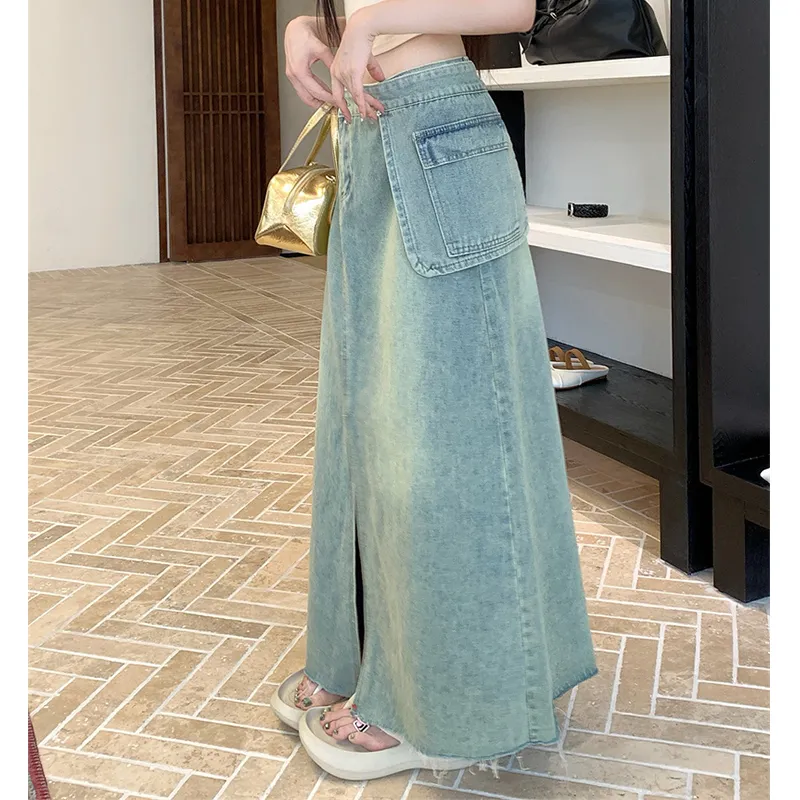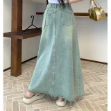 MORii Синий Женские Джинсовые Длинные Юбки