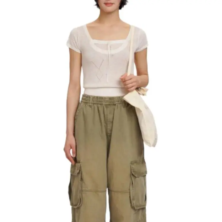 Moromoro Рубашка с квадратным вырезом короткий рукав женская