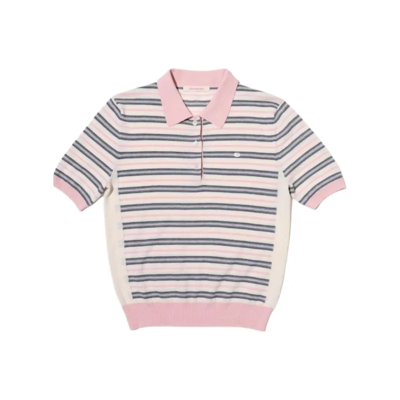Moromoro Полосы Поло Воротник Короткий Рукав KNIT Топы Поло Женские