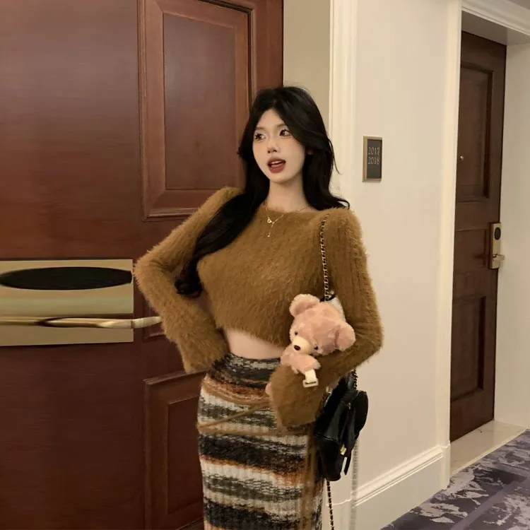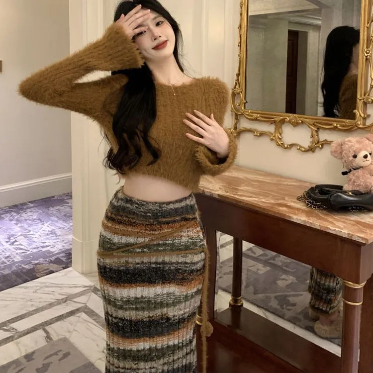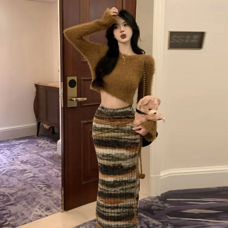 Комплект:Кофейный топ и юбка (без ремешка)
