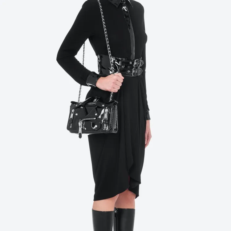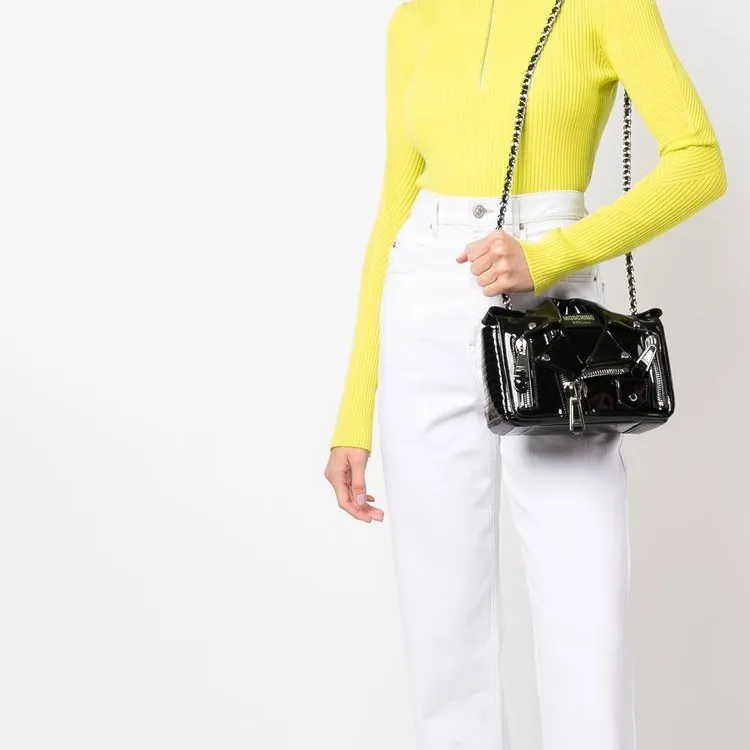 MOSCHINO Телячья кожа Байкер Сумка Сумка через плечо Сумка на плечо Женская Черная