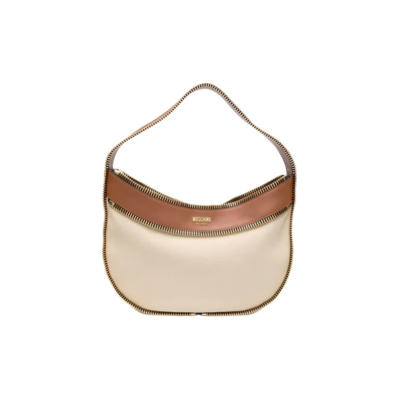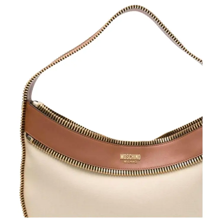 MOSCHINO Телячья кожа Полиамид Сумка через плечо Женская Бежевая и Коричневая