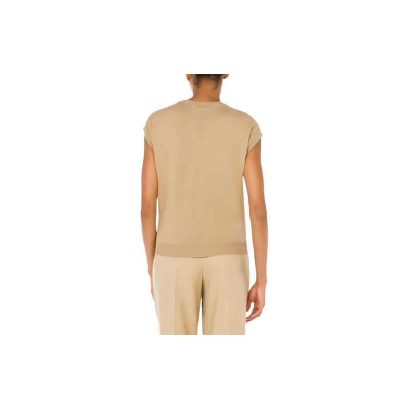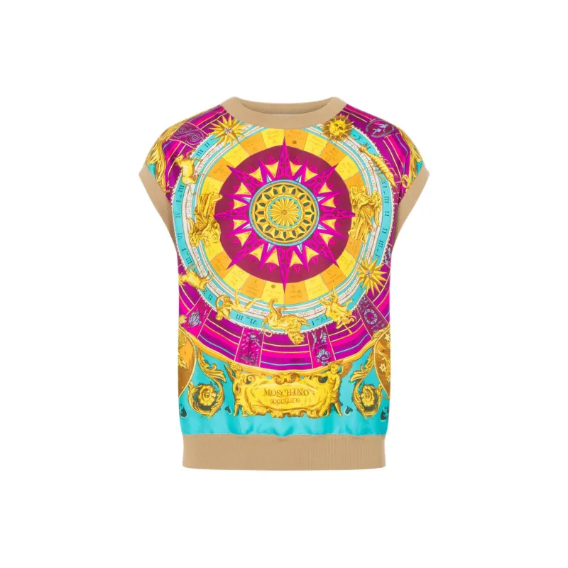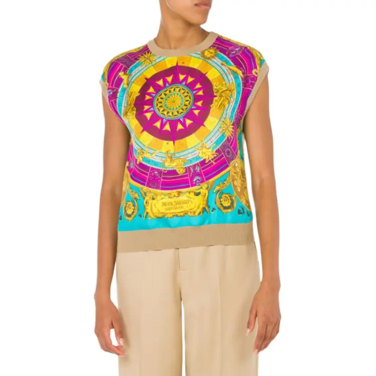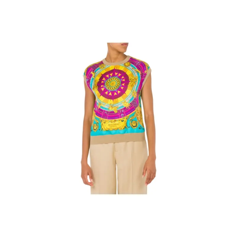 MOSCHINO Шарф Принт Вязаная модель And Шелк Саржа Топ T Рубашка Женские Многоцветный