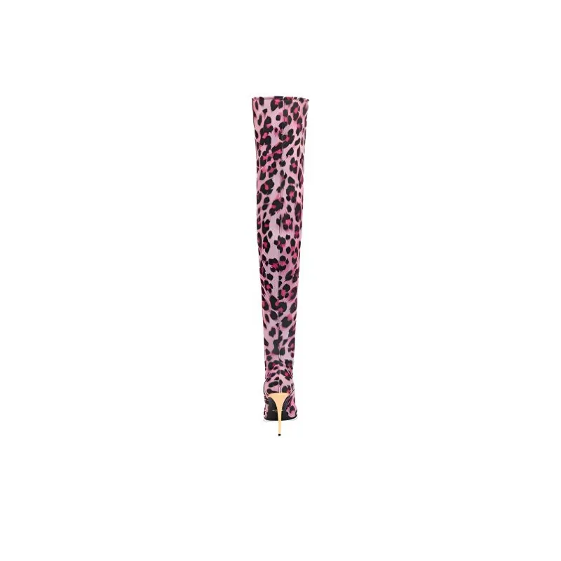 MOSCHINO Сапоги на высокий каблук 10 см с леопардовым принтом женские розовые