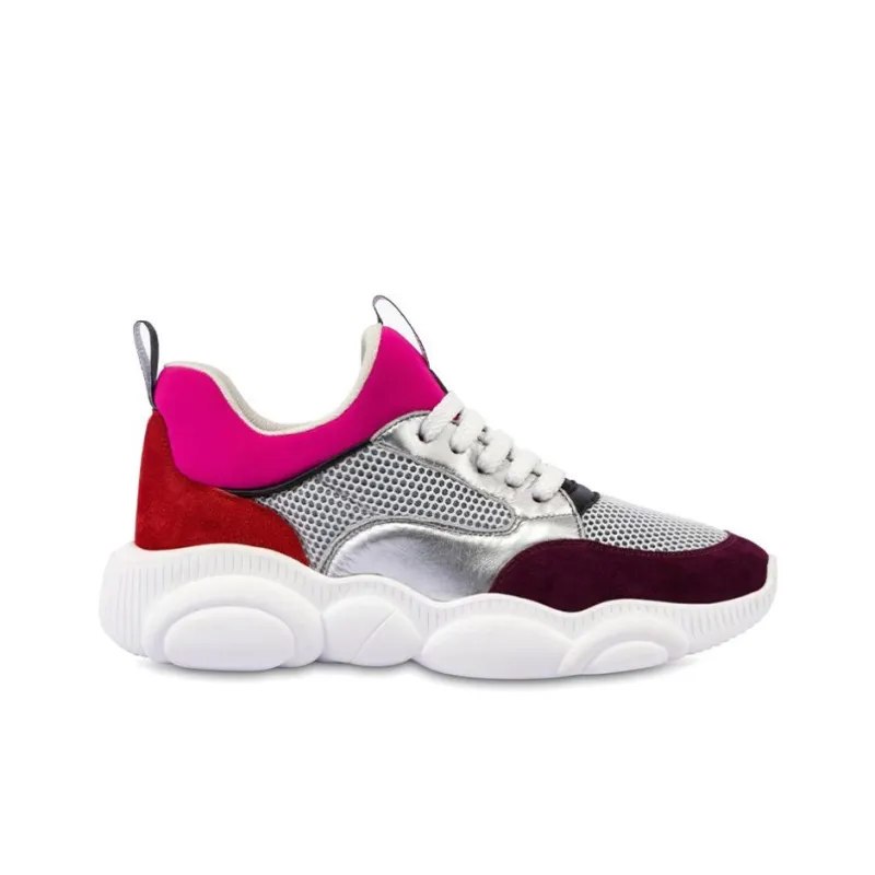 MOSCHINO Тедди Низкий Топ Повседневная Обувь Женская Серебряная Красная