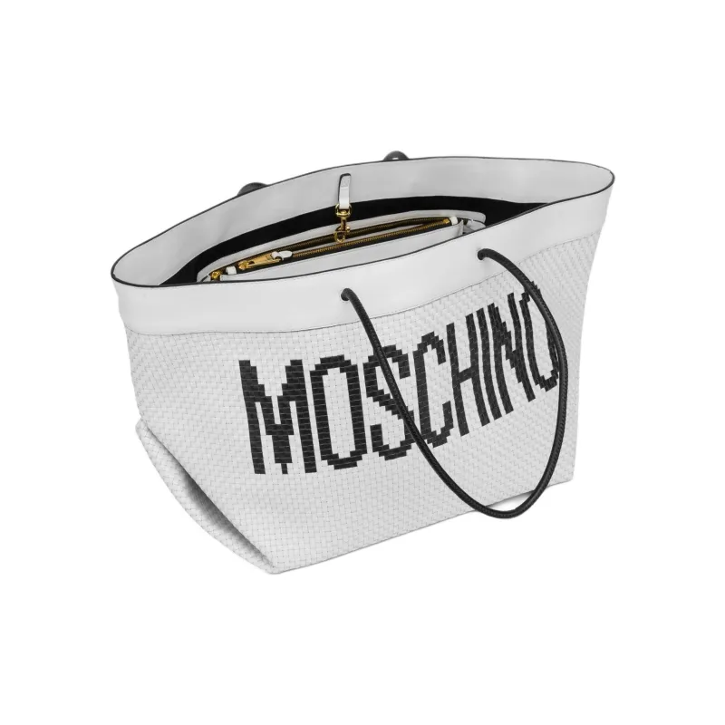 MOSCHINO Телячья кожа Тоут Сумка Сумка для покупок Сумка Большая Женская Белая