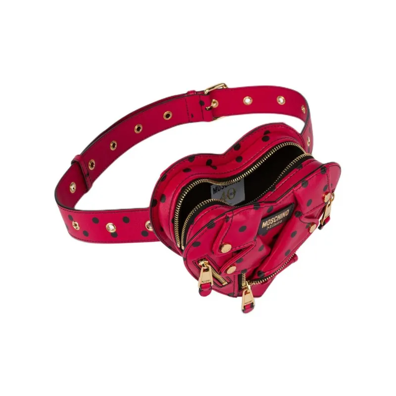 MOSCHINO Напп Кожа Сердце-Формированный Ремень Сумка Женская Красная