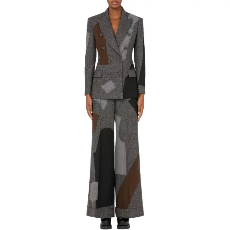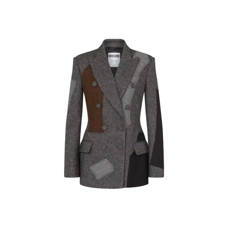 MOSCHINO Пэчворк Смесовая шерсть Куртка Куртки Пальто Женские Серый