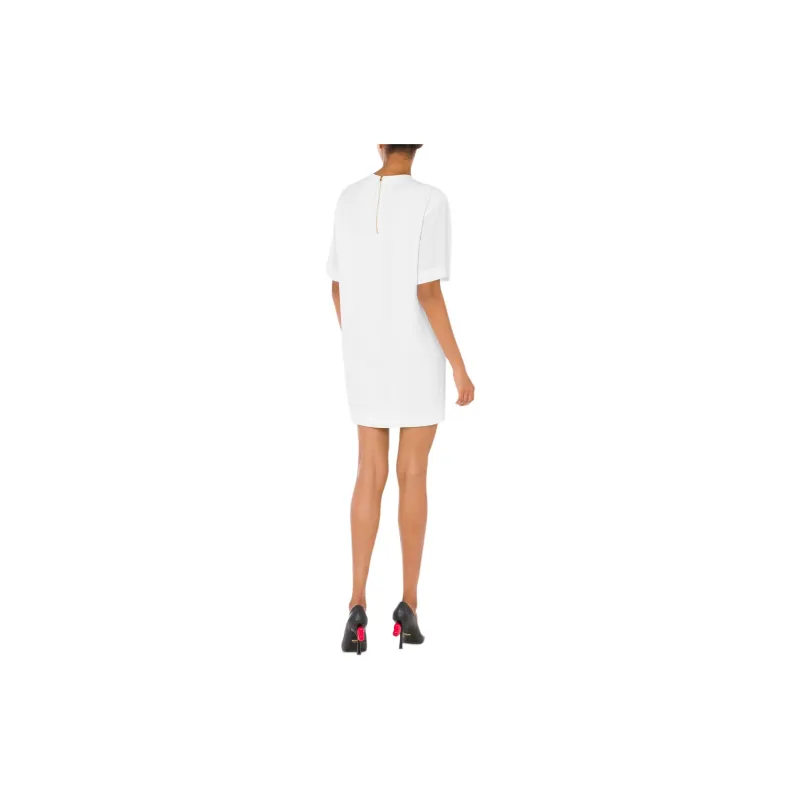 MOSCHINO Принт Envers Сатин Платье Короткий Рукав Платье Женское Белое