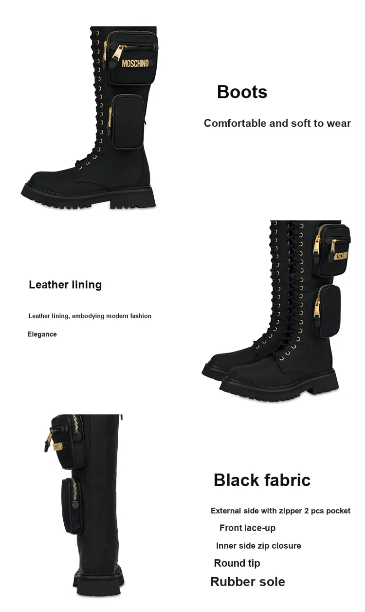 MOSCHINO Safari Женские высокие сапоги до колена черные