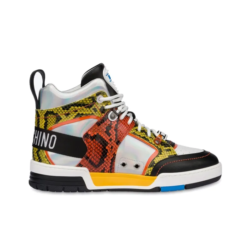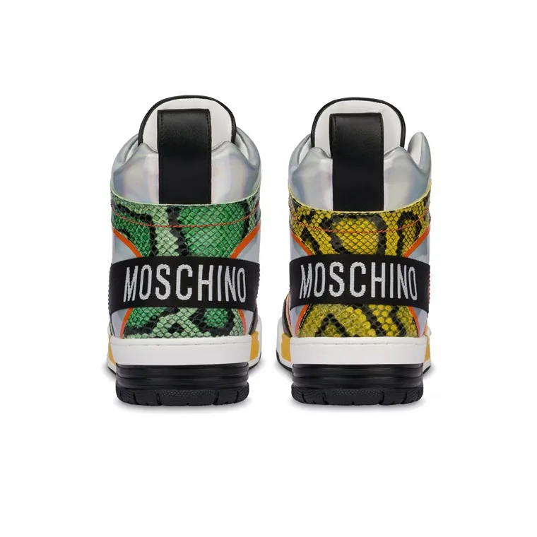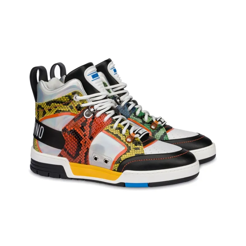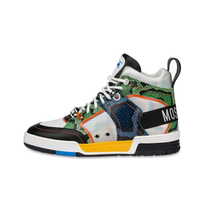 MOSCHINO Стритбол Высокие Топы Стильные Скейтбординги Мужские Серебристо-Зеленый Оранжевый