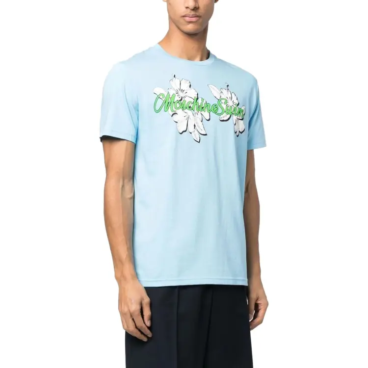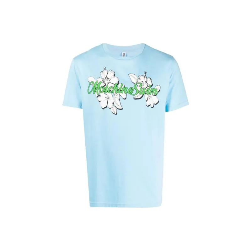 MOSCHINO Небесно-голубая мужская футболка с коротким рукавом