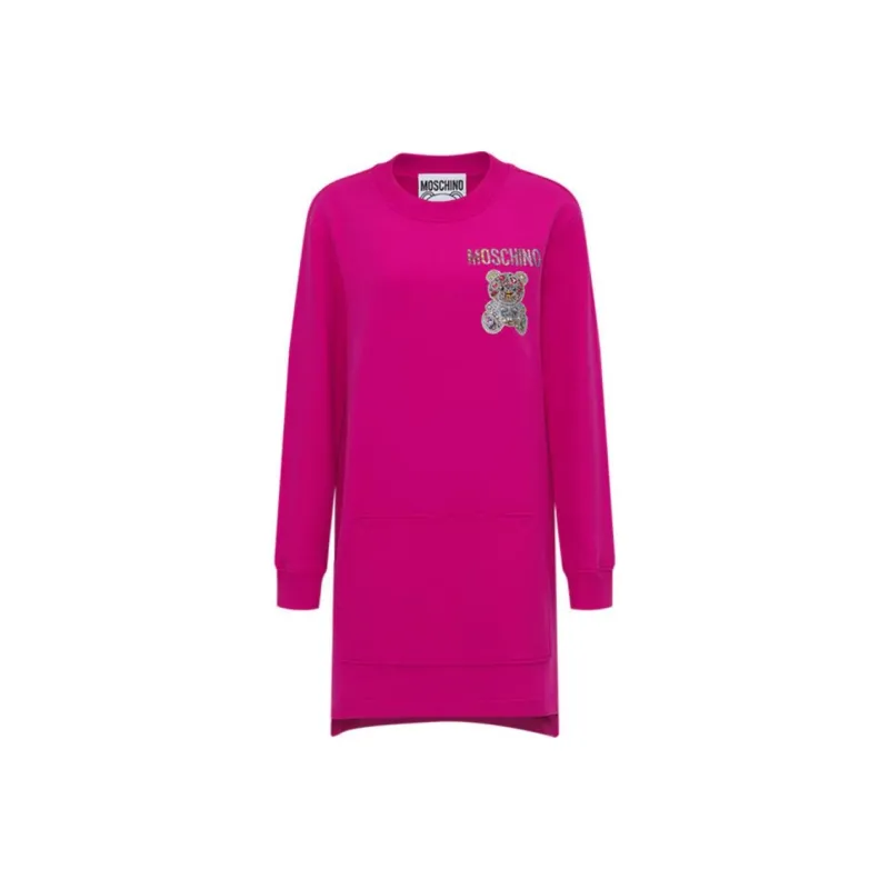 MOSCHINO FW23 Длинное Платье с Длинными Рукавами Женское Розовое