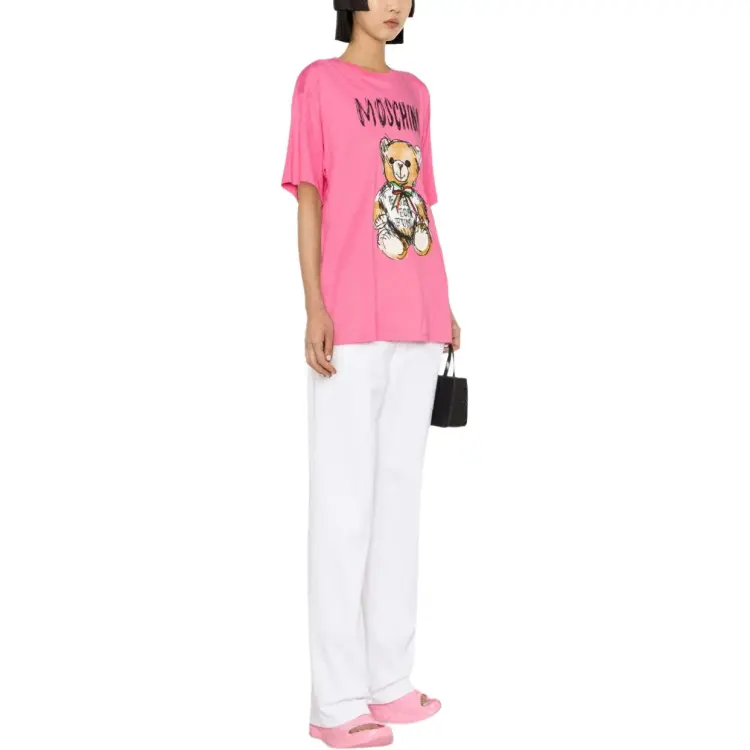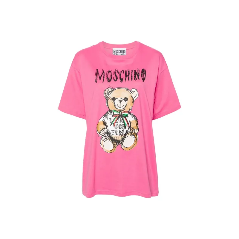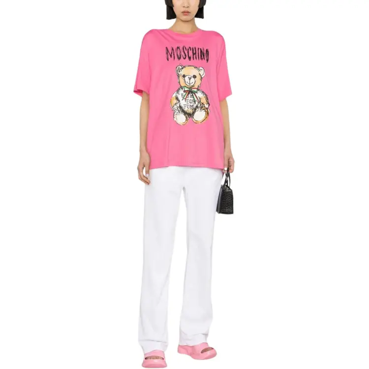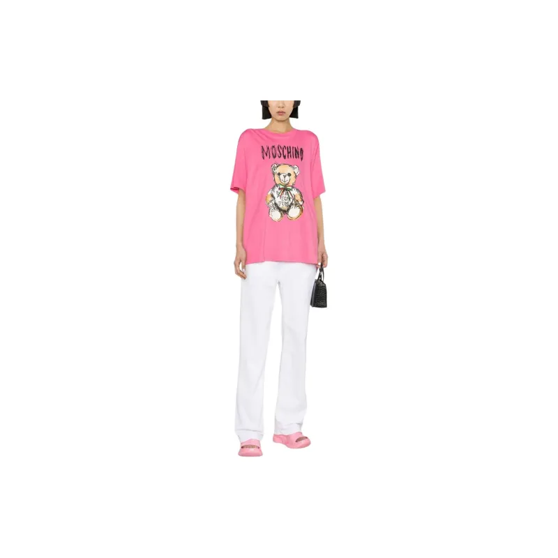 MOSCHINO SS24 Рукав с оборванным плечом T-рубашка Женская Розовая