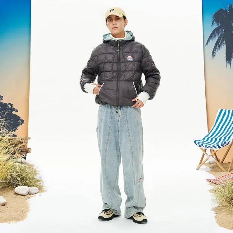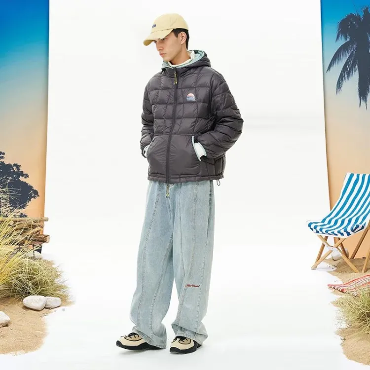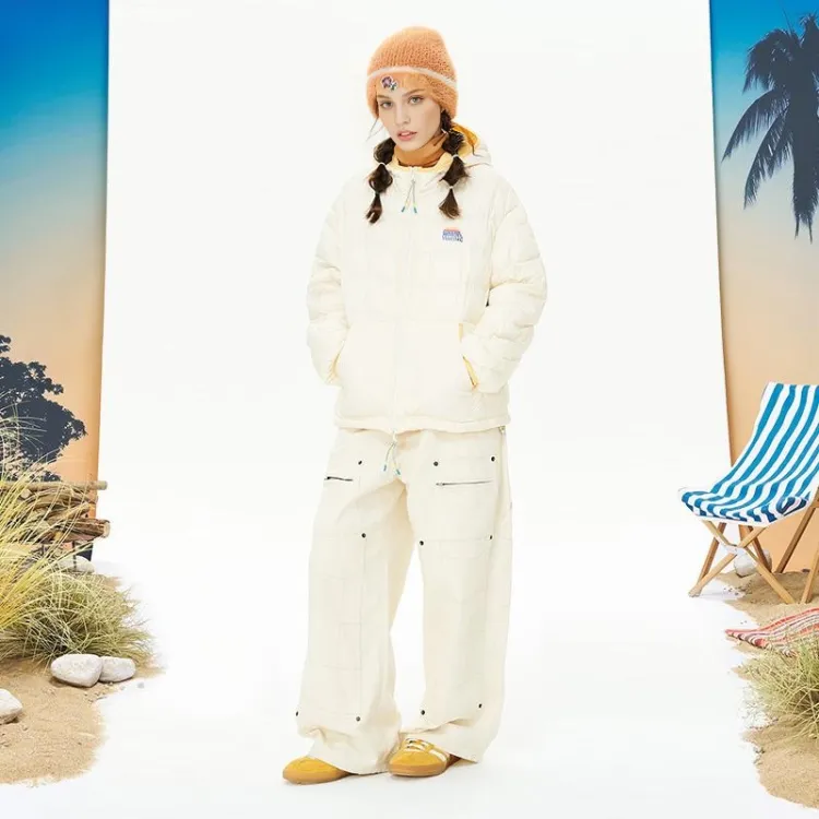 MostwantedLab Outdoor Multicolor С принтом Irregular Wave Seamed С капюшоном Unisex Осенний Зимний Down Jacket Liner