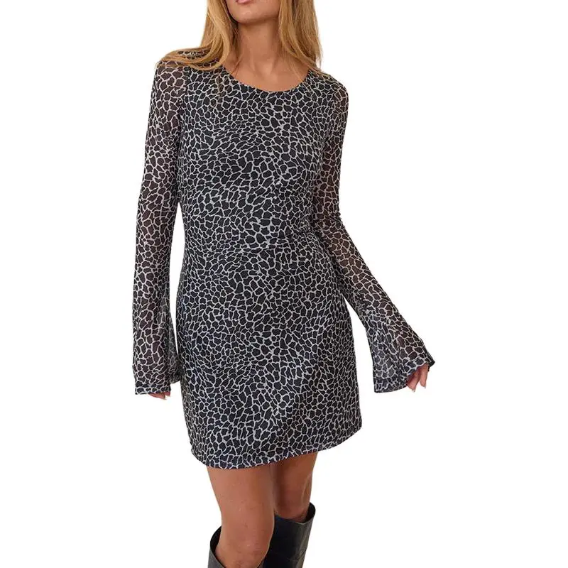 Motel Rocks Sartika A Линия Мини Платье In Жираф Черный And Крем Длинный Рукав Платье Женское