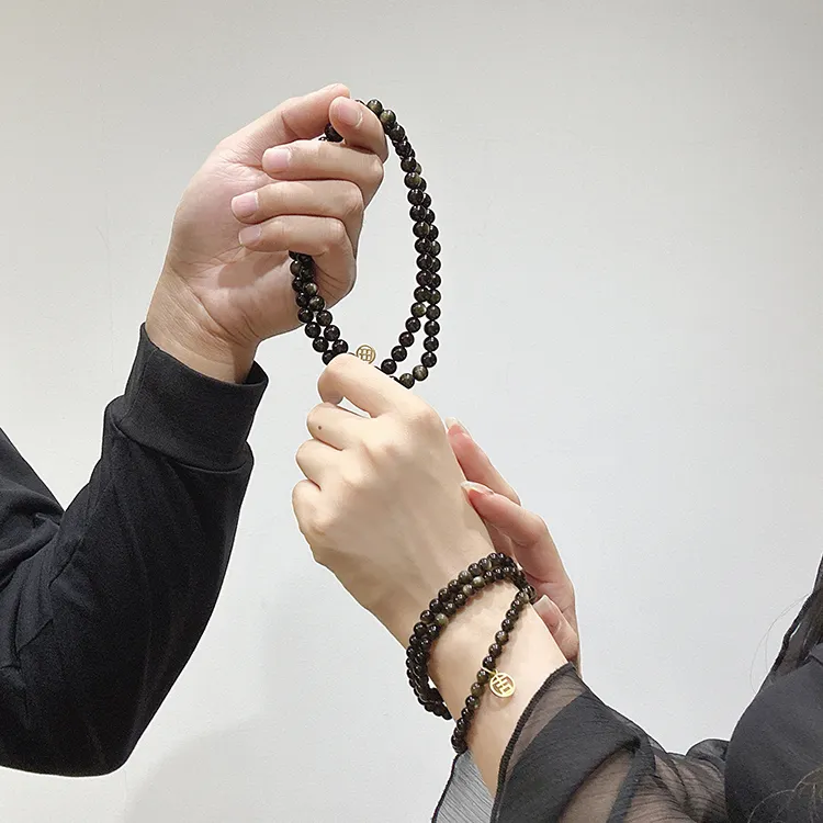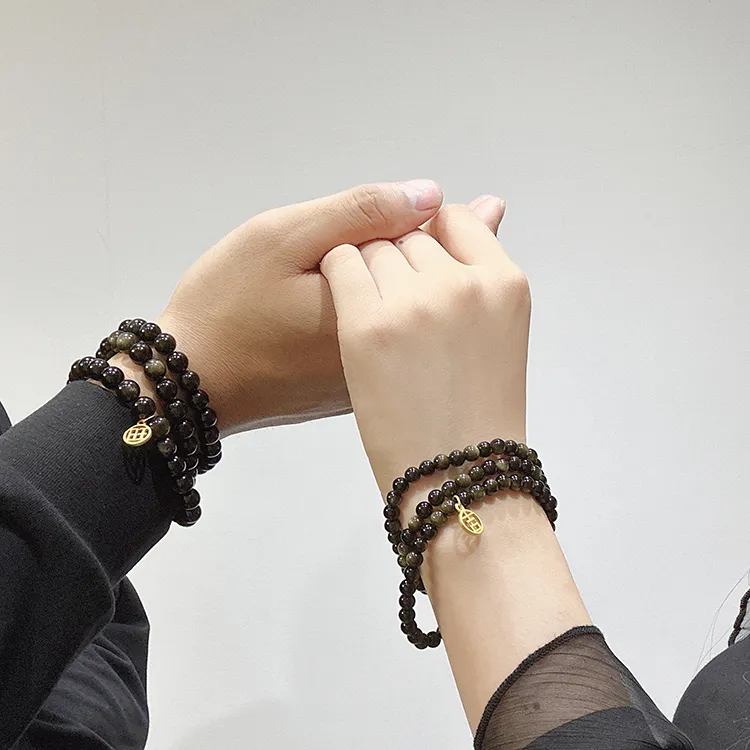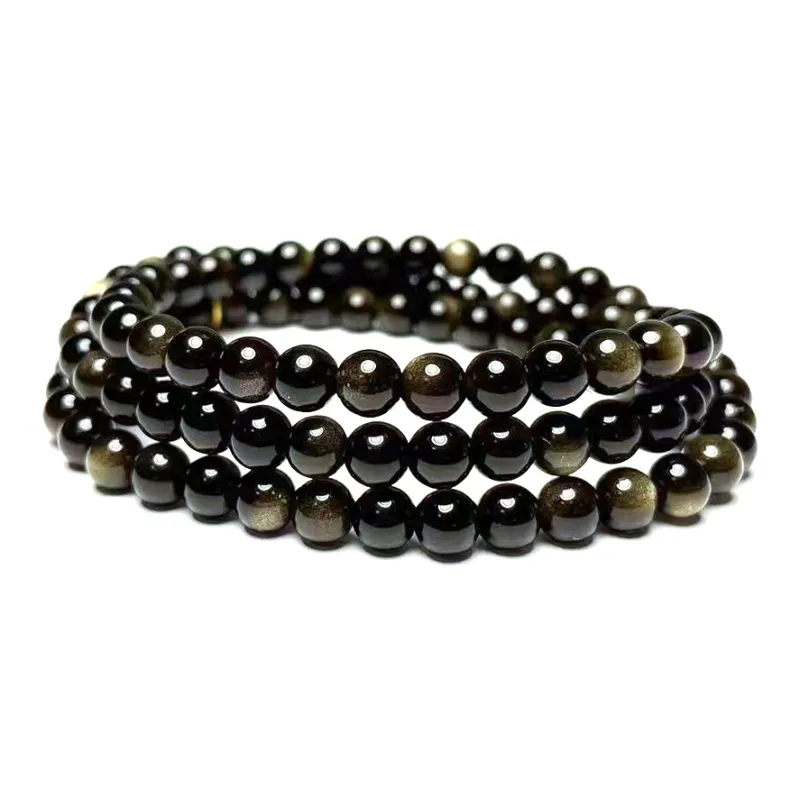 Стиль:Золотой браслет с бусинами из обсидиана для женщин