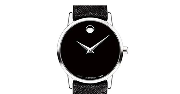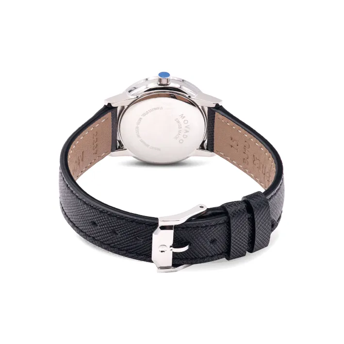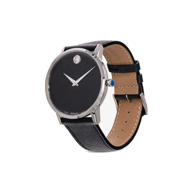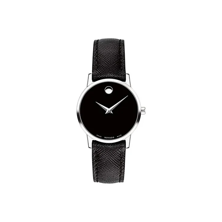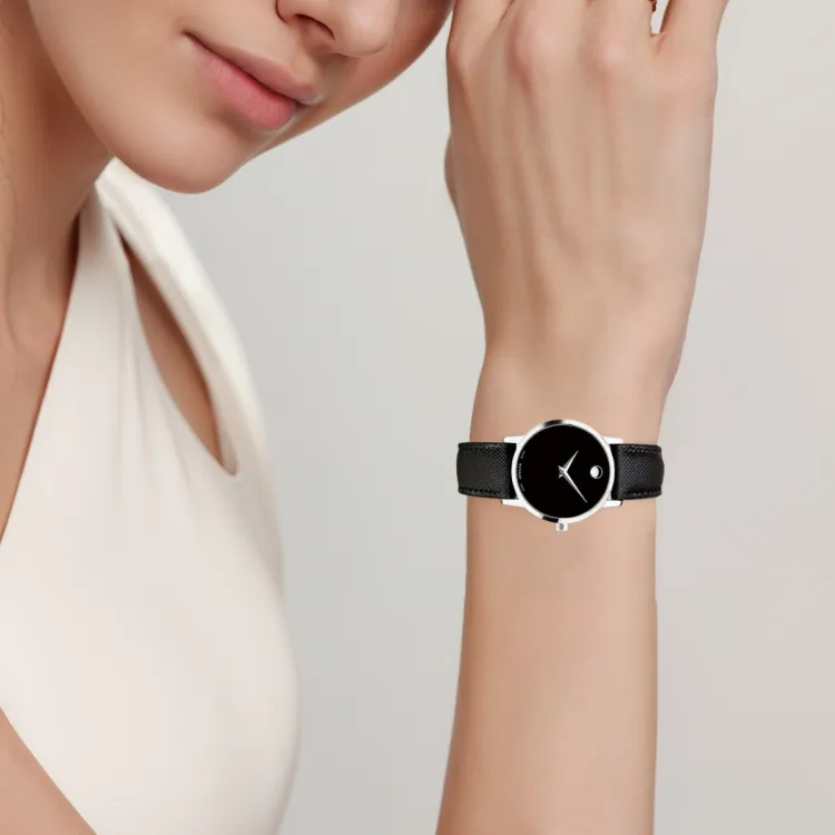 MOVADO Museum Series Кварцевый механизм Женские часы 28 мм Черный циферблат Корпус из нержавеющей стали Кожаный ремешок