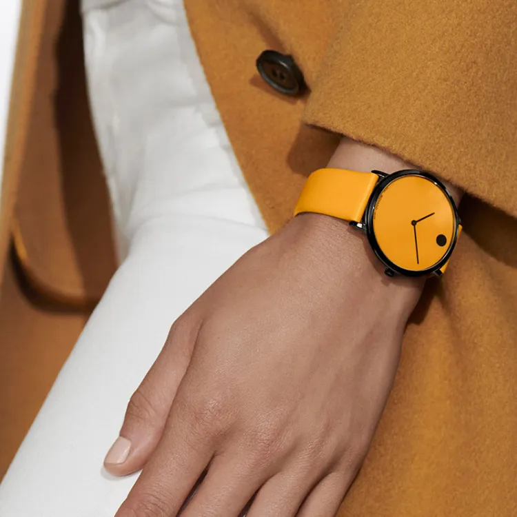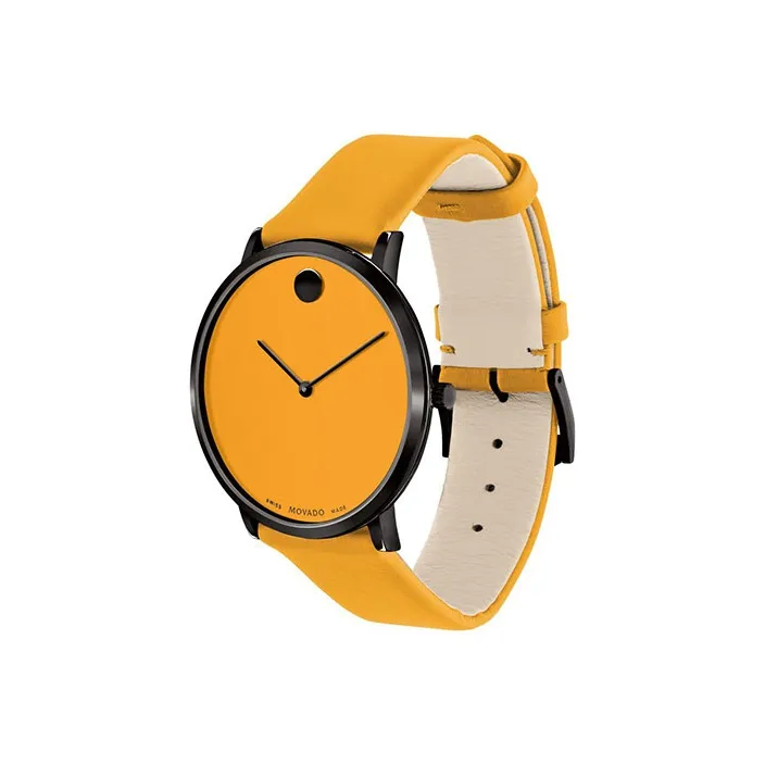 MOVADO 47 Collection Кварцевый механизм Унисекс Часы 40 мм Желтый Циферблат Часы Корпус из Нержавеющей стали