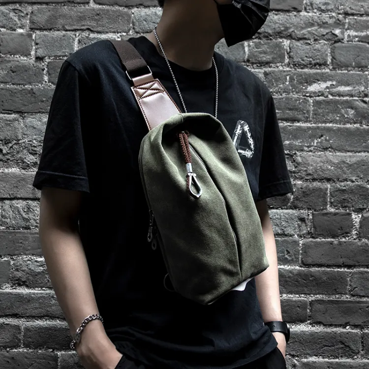 MOYYI Canvas Sling Bag Small Men's Gray Smoke Cyan