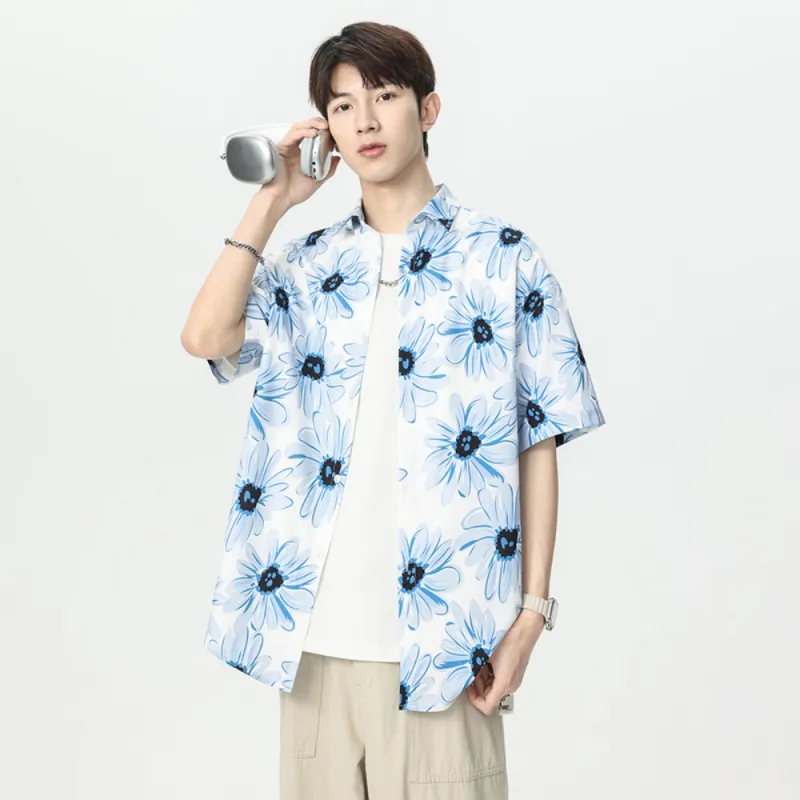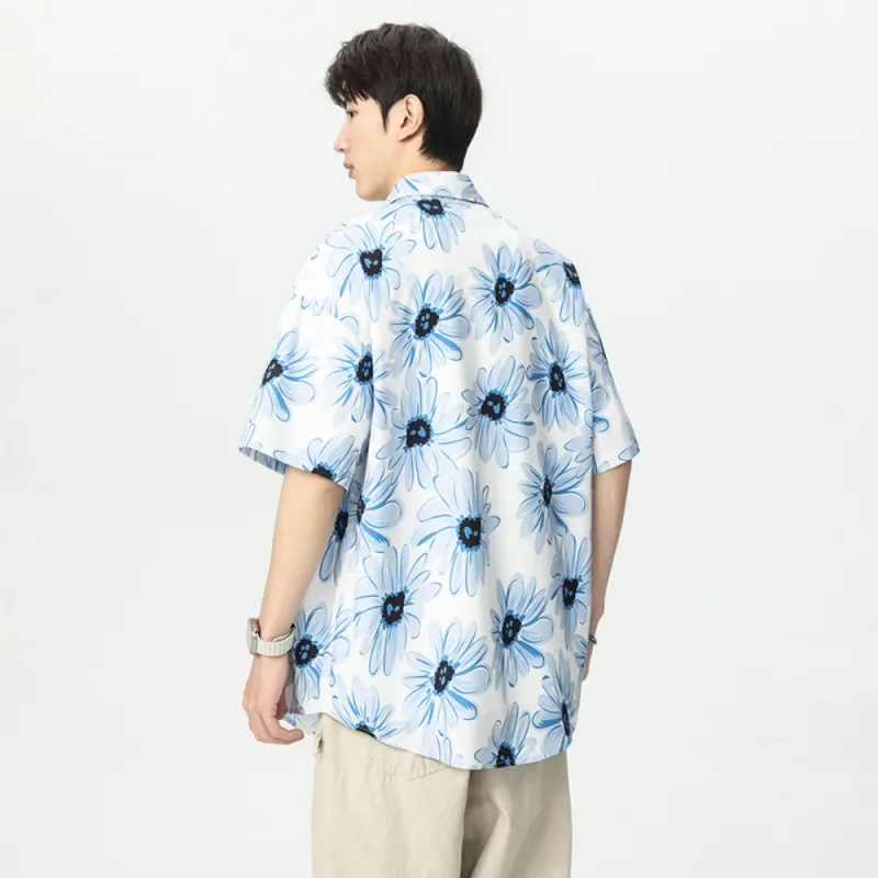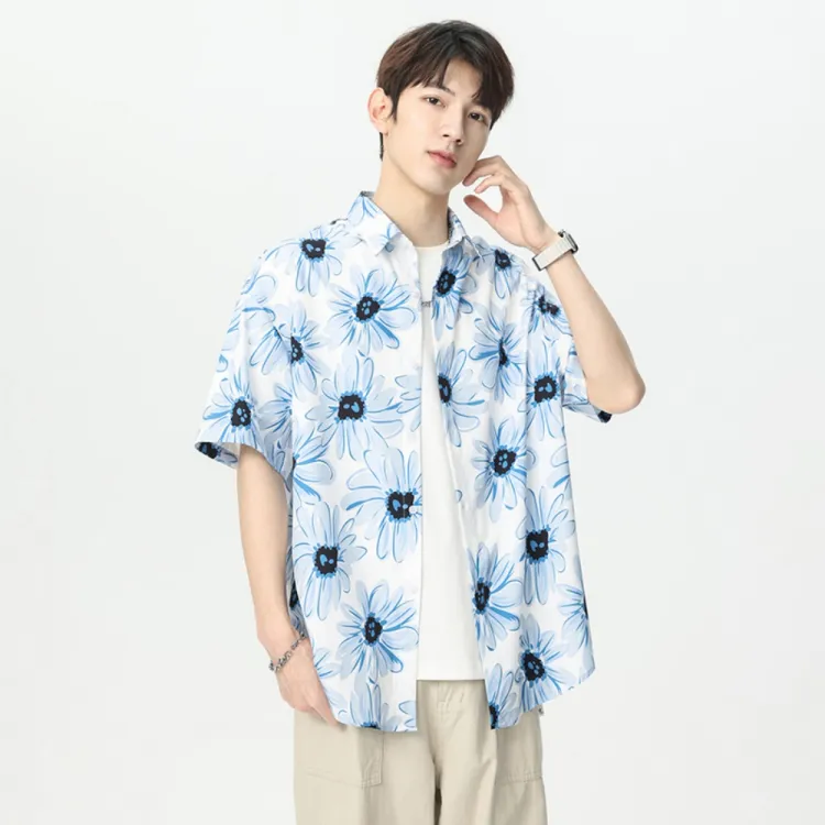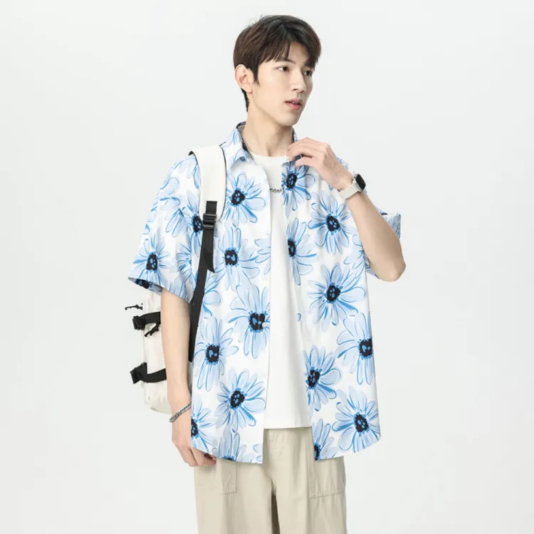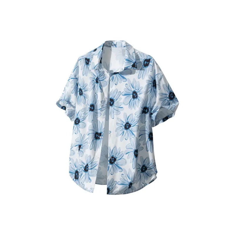 MPF Синий Цветочный Лист Унисекс Рубашки