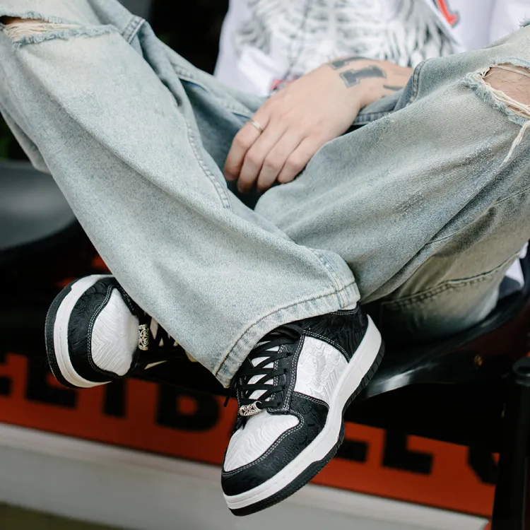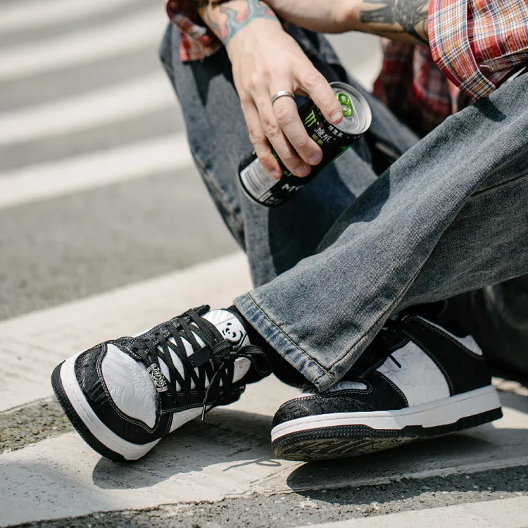 MR.A Slip Resistant Abrasion Resistant Low Top Скейтборд Кроссовки Unisex Черный Белый