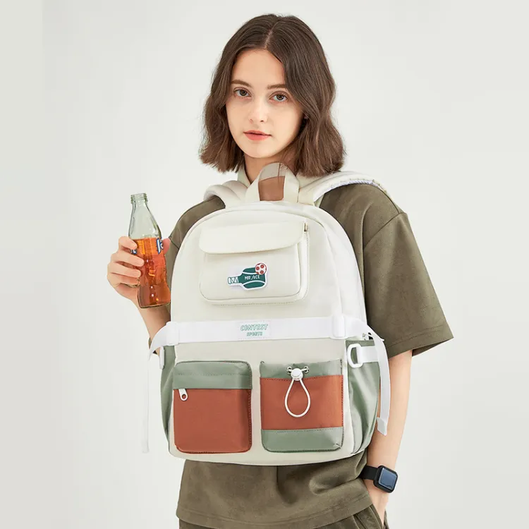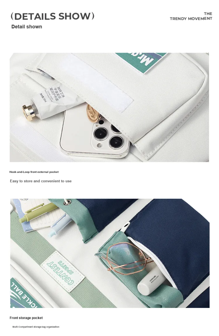 MR.ACE HOMME Полиэстер Рюкзак Стандартный Унисекс Пыльно-синий Белый Карамель Белый
