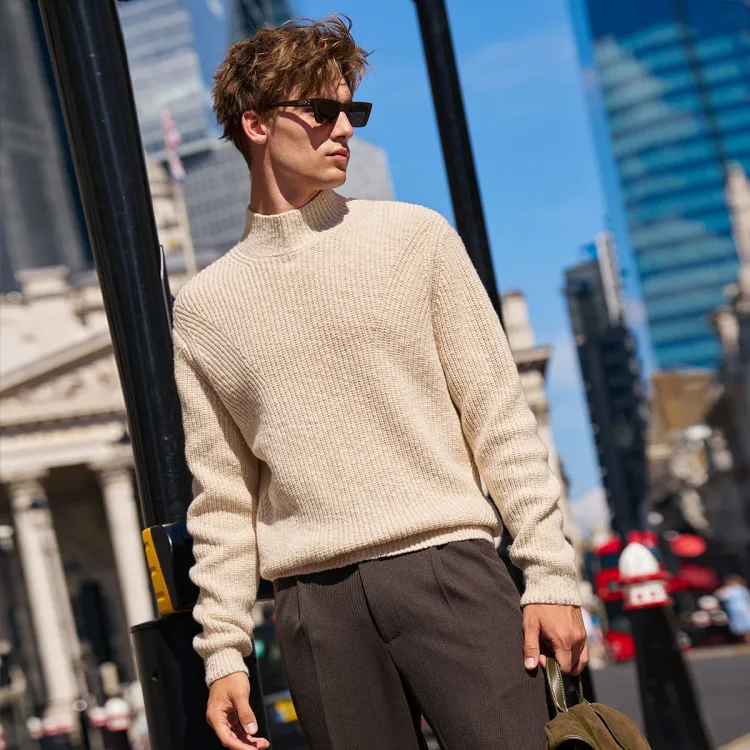 Mr.Bu Светлый Цветочный Дизайн CAMEL Смешанный Цвет Мужские Свитера