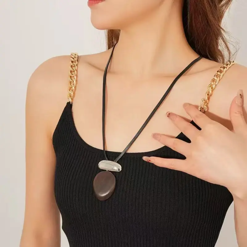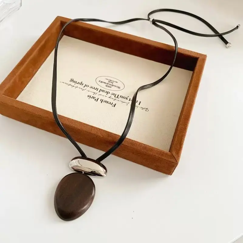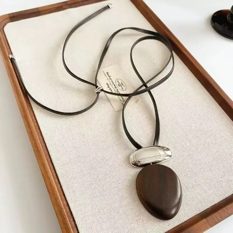 Круглый черный, персиковое дерево, металл, цепочка для свитера