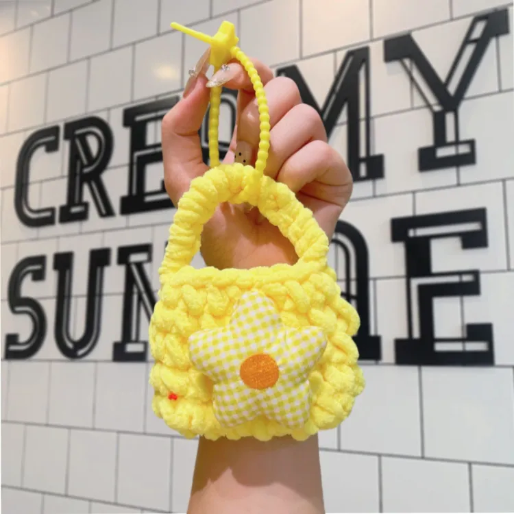 Цветочный трикотажный тканевый кошелек для монет с украшением - желтый + случайный, упаковка 1 штука