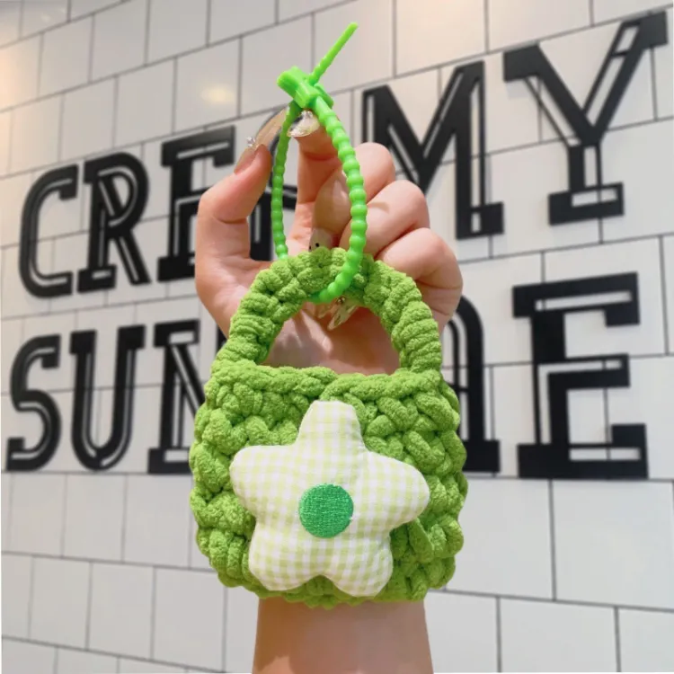 Цветочный трикотажный тканевый кошелек с подвеской в виде монеты - зеленый + случайный, упаковка 1 штука