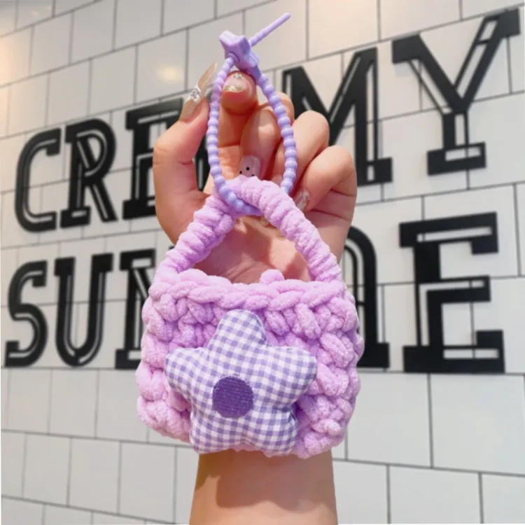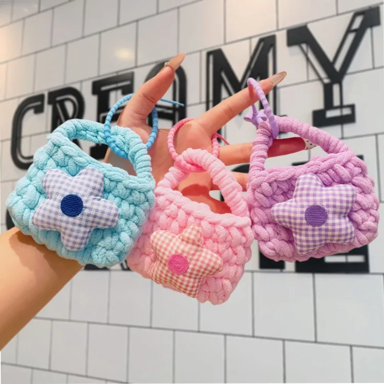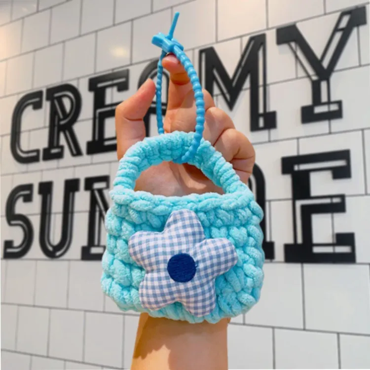 Цветочный трикотажный тканый кошелек для монет с украшением - синий + случайный, упаковка 1 шт