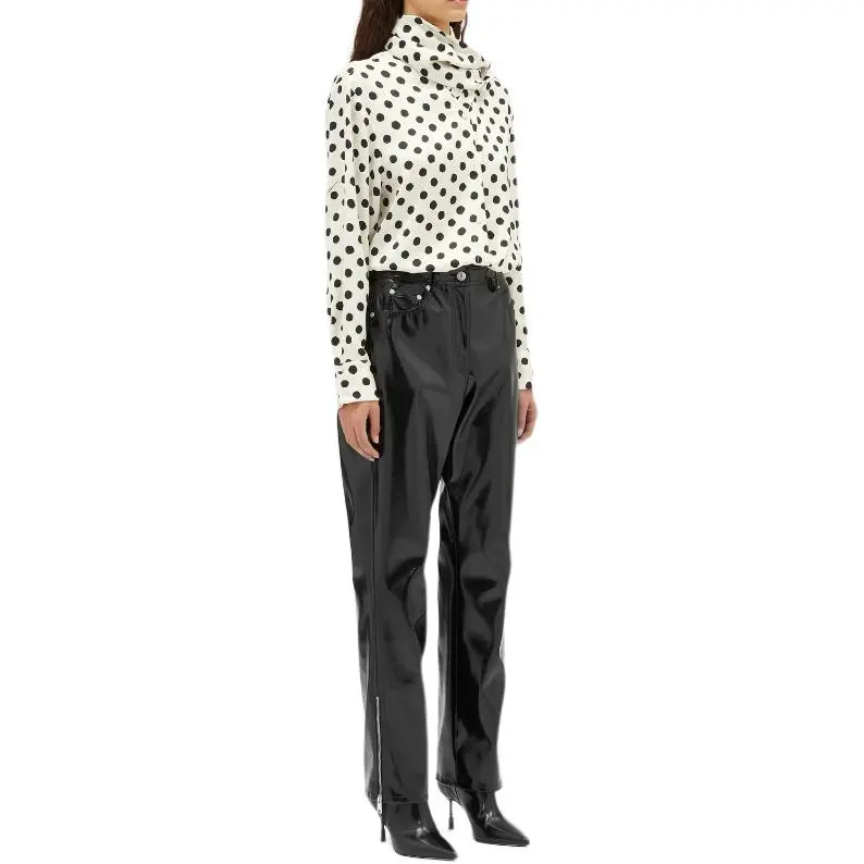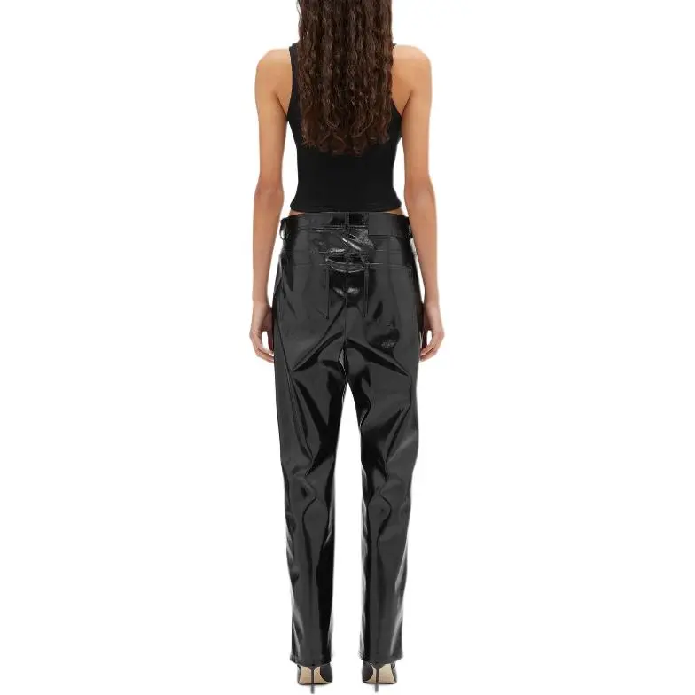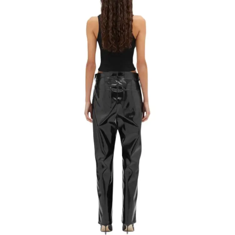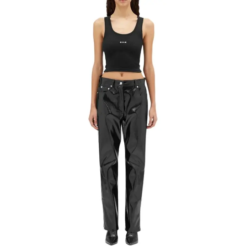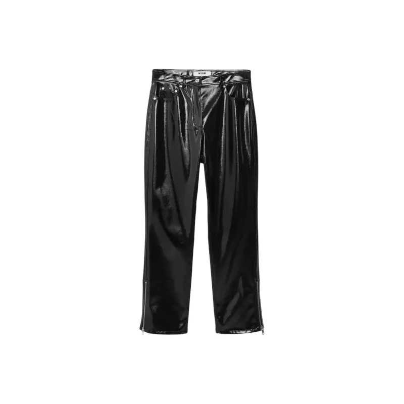 MSGM Кожаные брюки женские черные