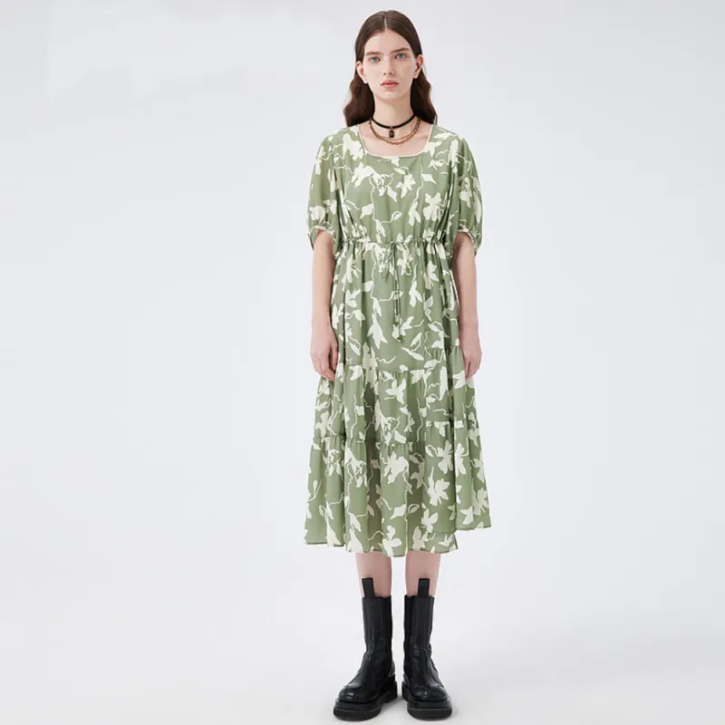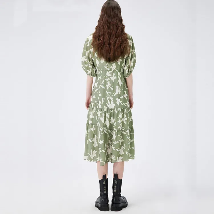 MSLAN Короткий рукав Платье Женское Iwao Чайно-зеленый