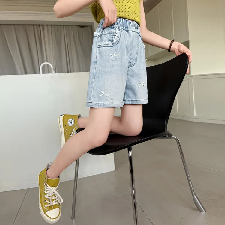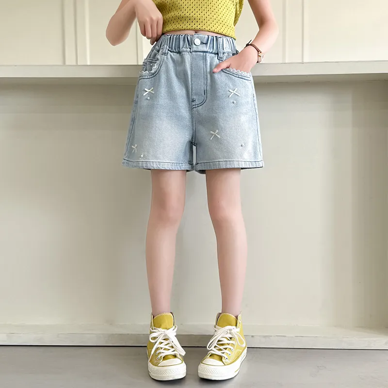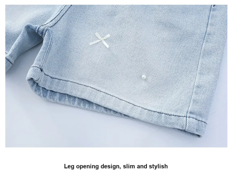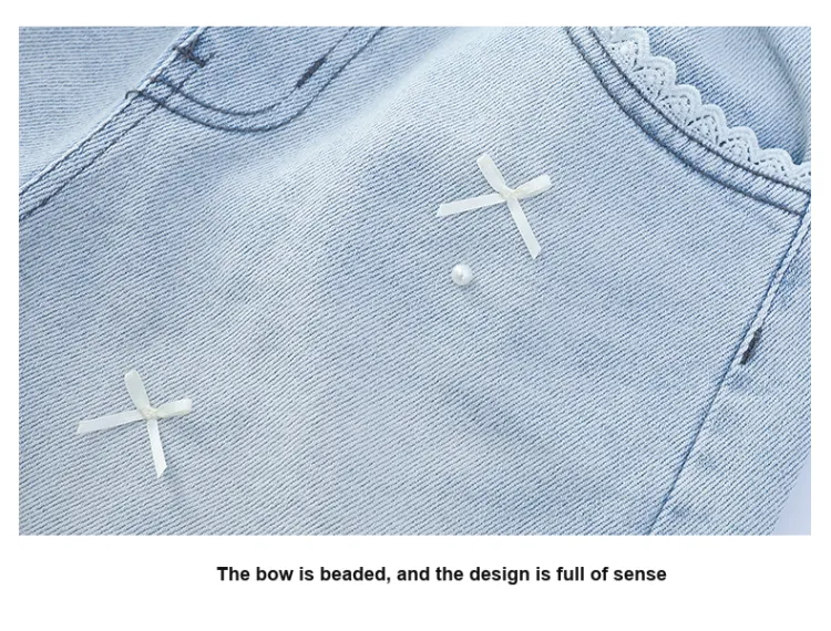 Mu Anmu Стильный Повседневный Тонкий Жемчужный Бантик Деним Детский