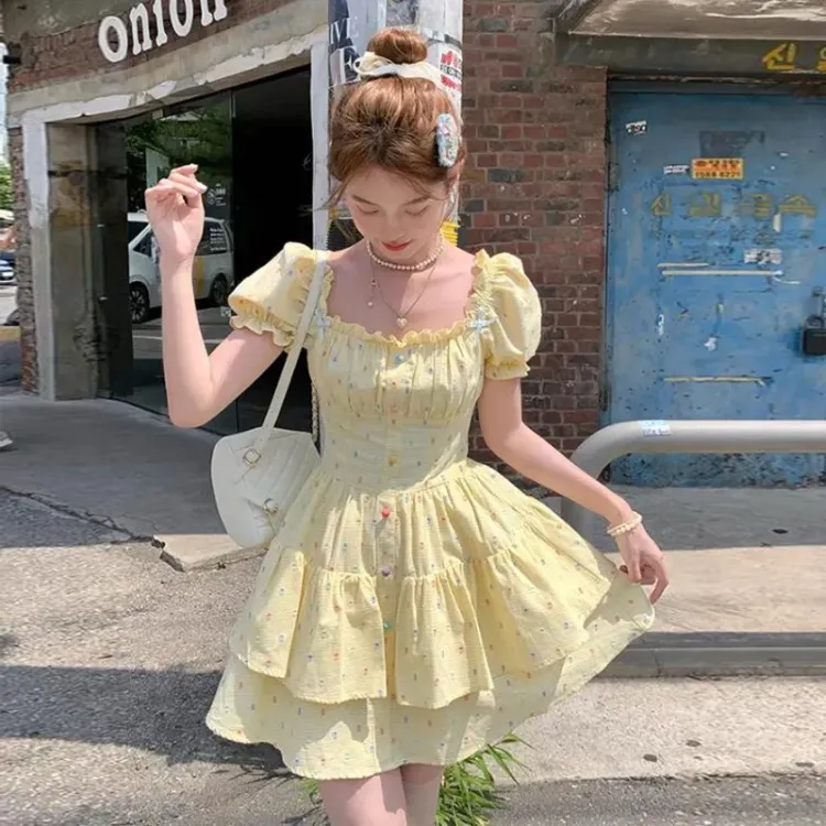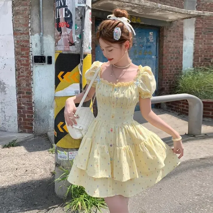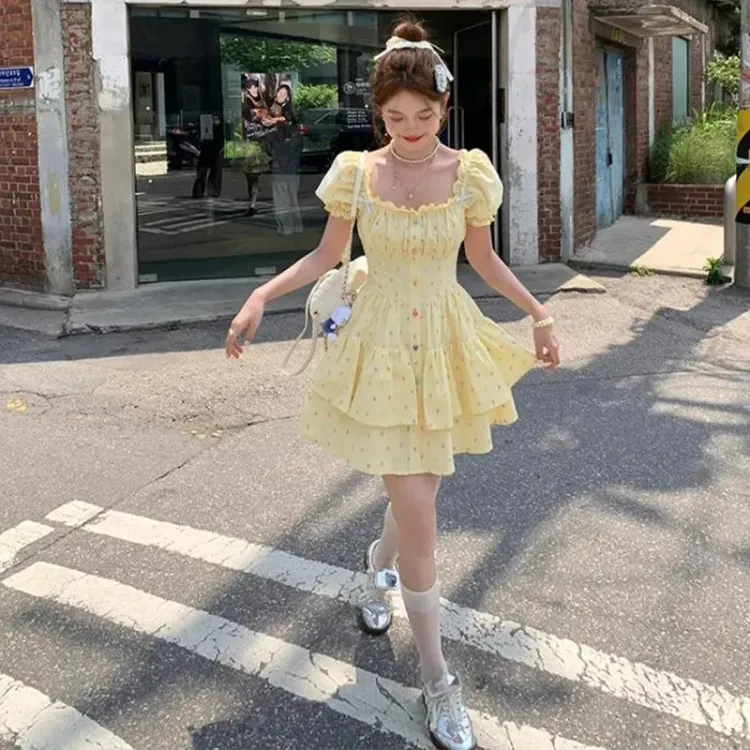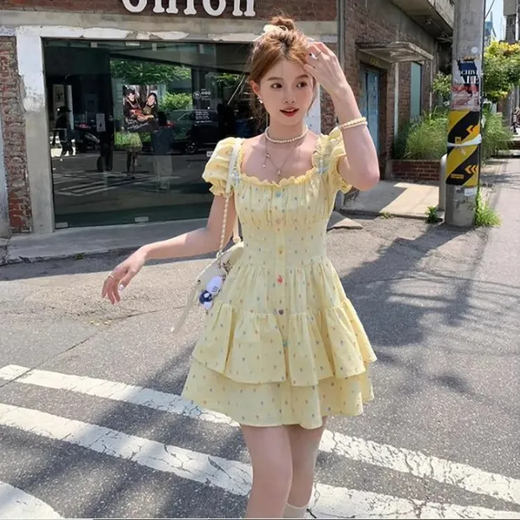 Желтая юбка с коротким дизайном и гороховым узором