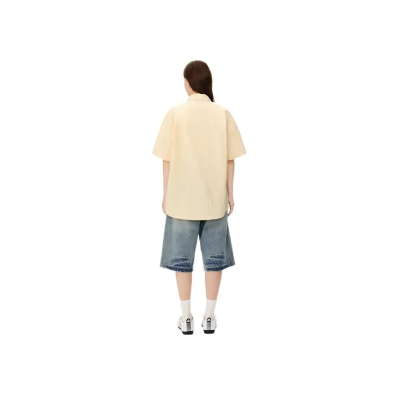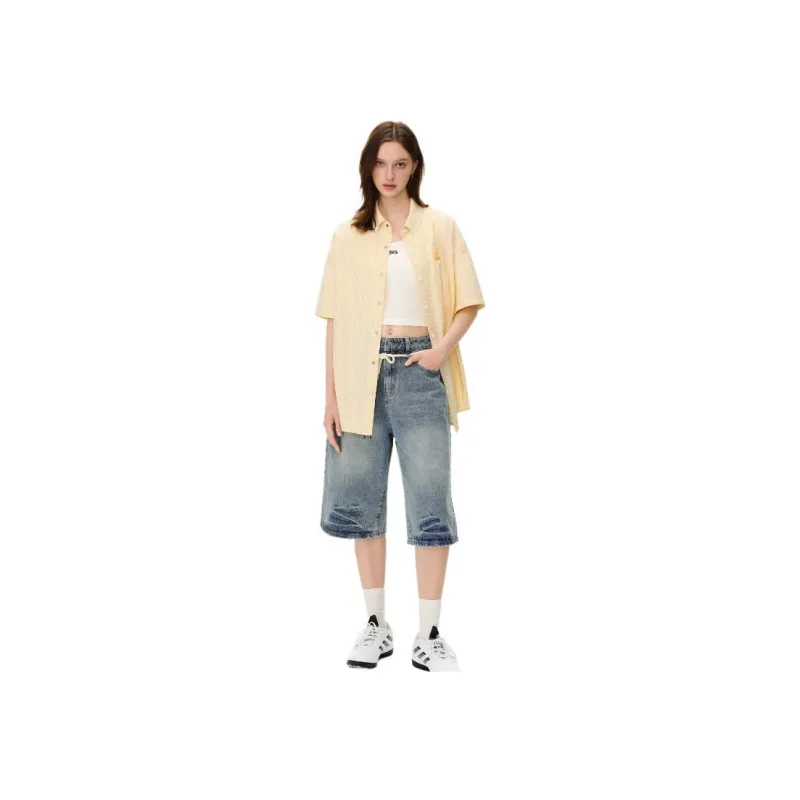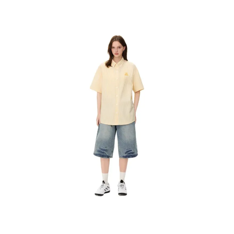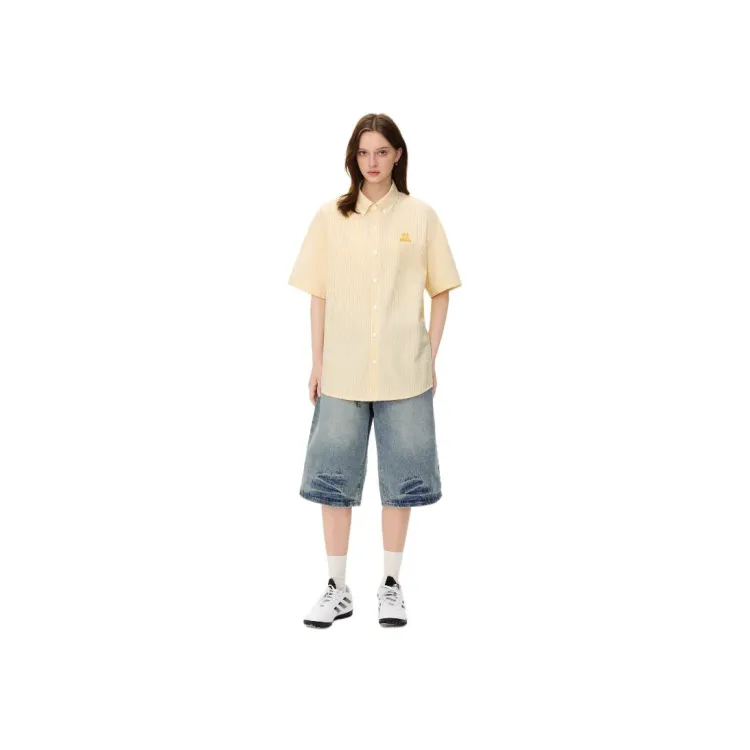 Mu Xiao Xin Желтый Полосатый Короткий Рукав Рубашка Женская Рубашка