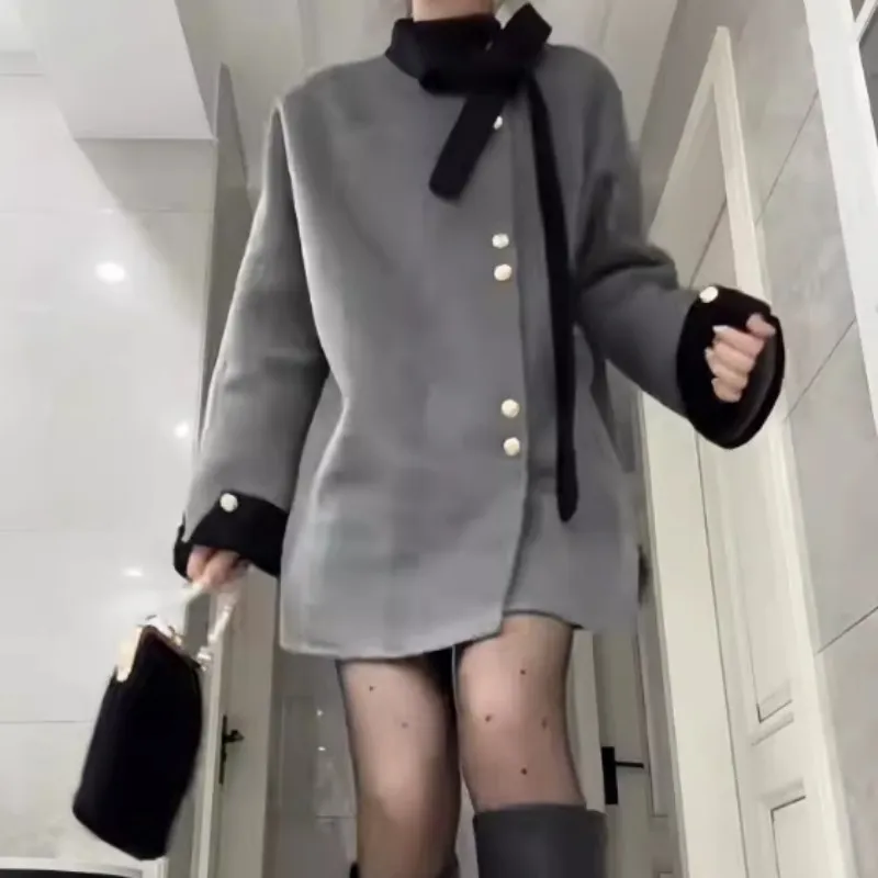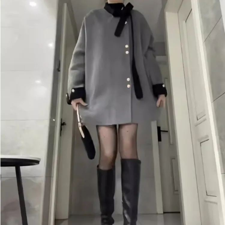 Mu Xiao Xin Серый Пальто с Внутренней Одеждой Меры Женские Пальто