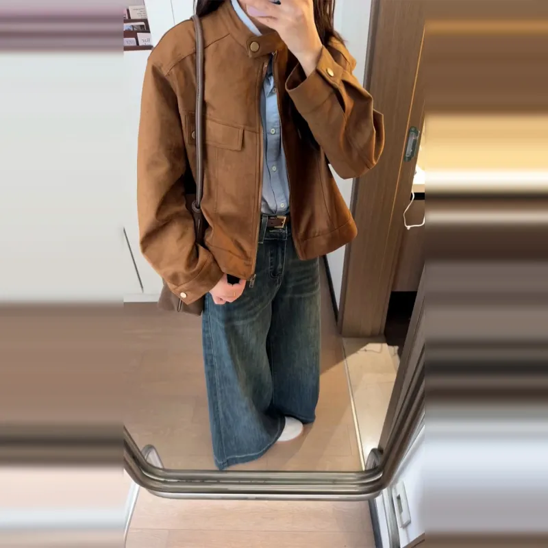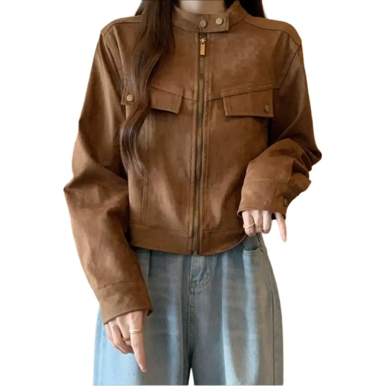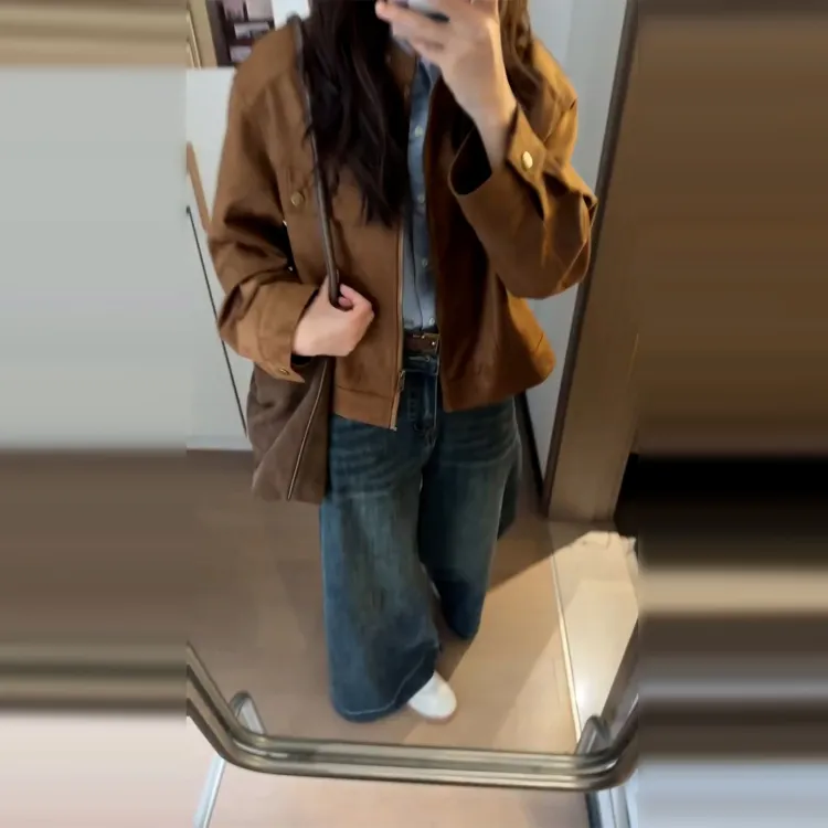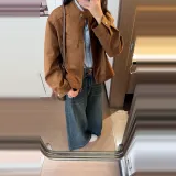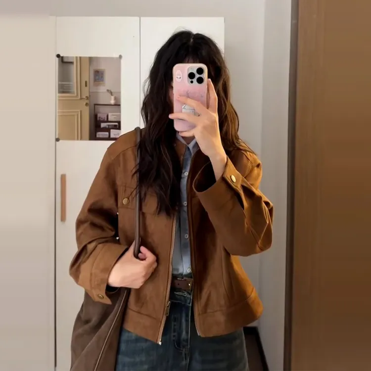 Mu Xiao Xin Коричневый Подарочный набор с MU Xiaoxin Бренд Наклеенный Женский Куртка