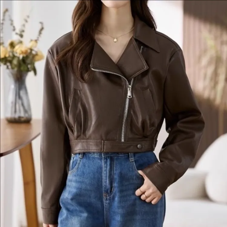 Mu Xiao Xin Кожа Куртка Женская