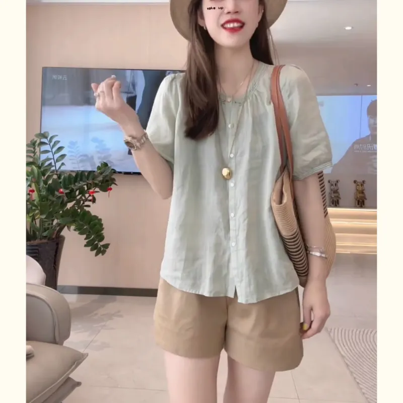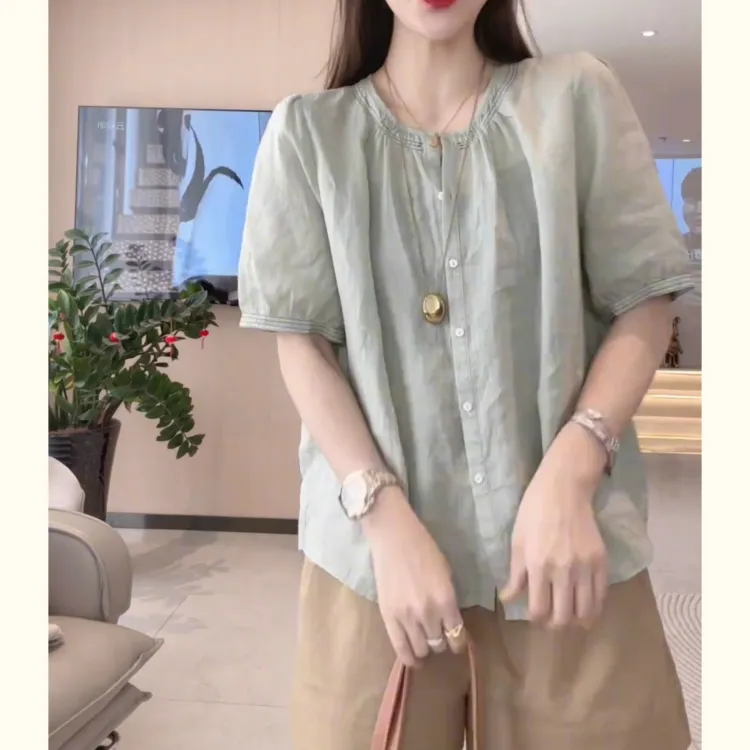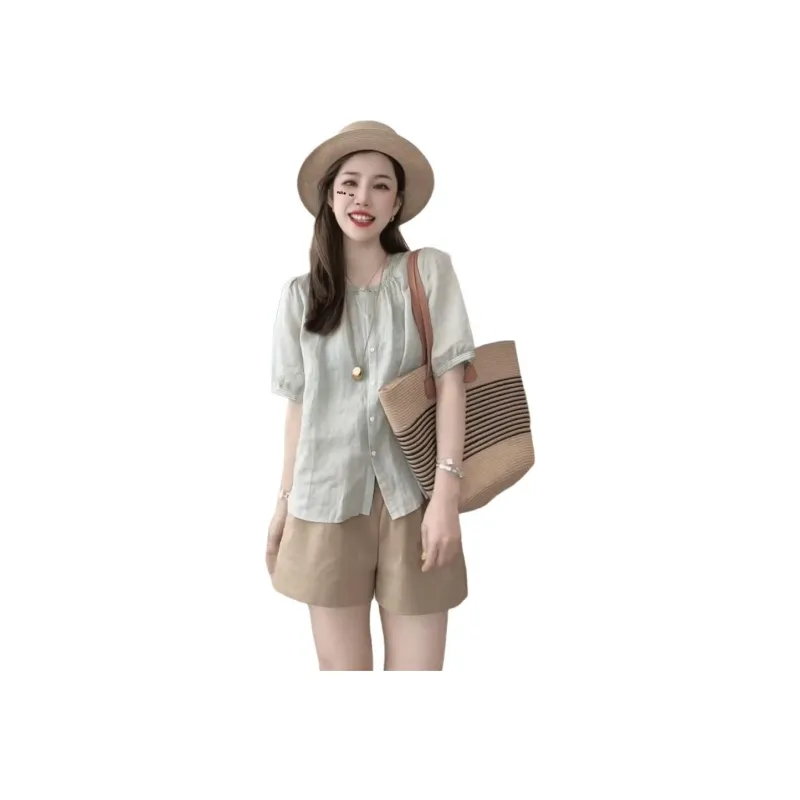 Mu Xiao Xin Светло-зеленые Женские Рубашки