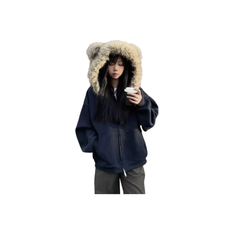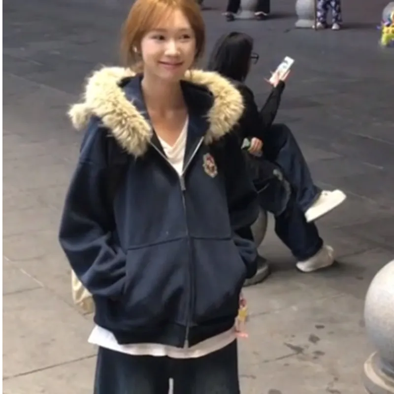 Mu Xiao Xin Темно-синий Синий С подарками MU Xiaoxin Бренд Наклеенный Женские Свитшоты