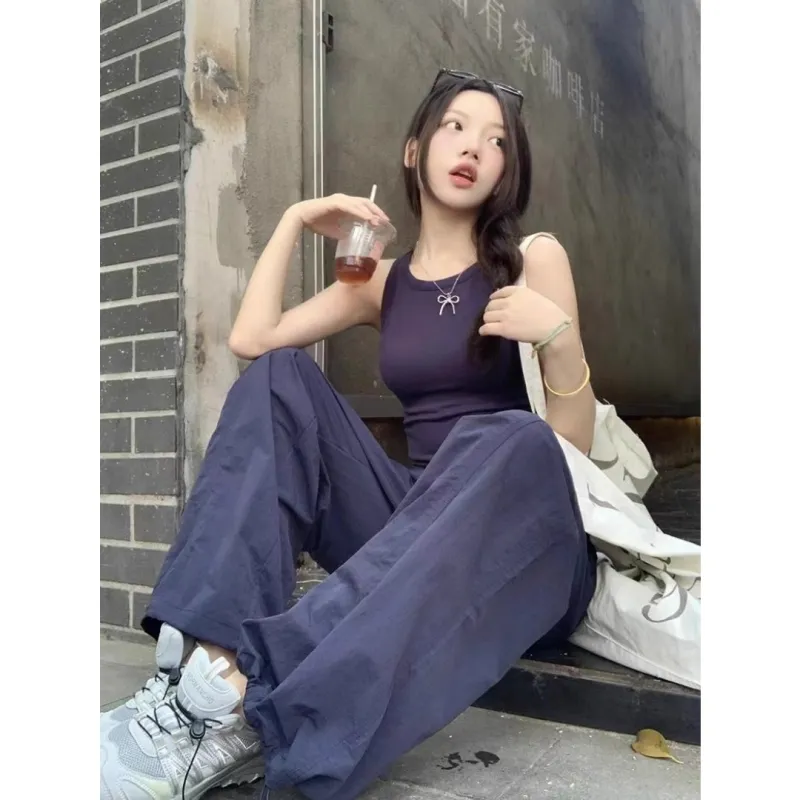 MUCCHIC Темно-лазурные циановые женские повседневные брюки