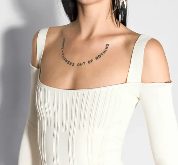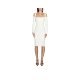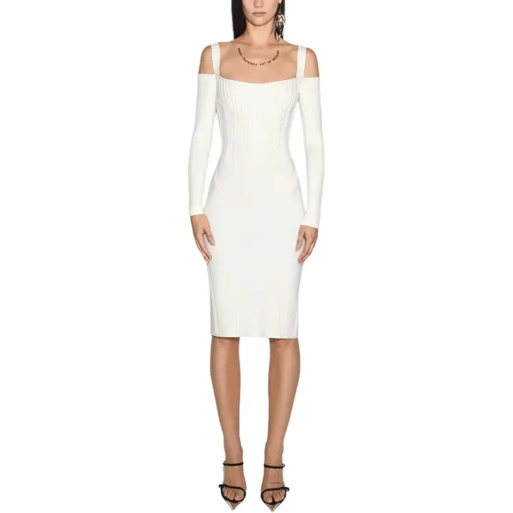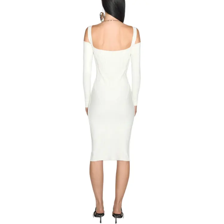 Mugler SS25 Off Белый Boning Детали Вязаное Платье Длинный Рукав Платье Женское Серый Белый