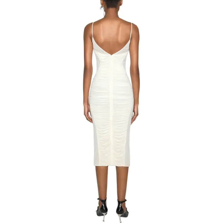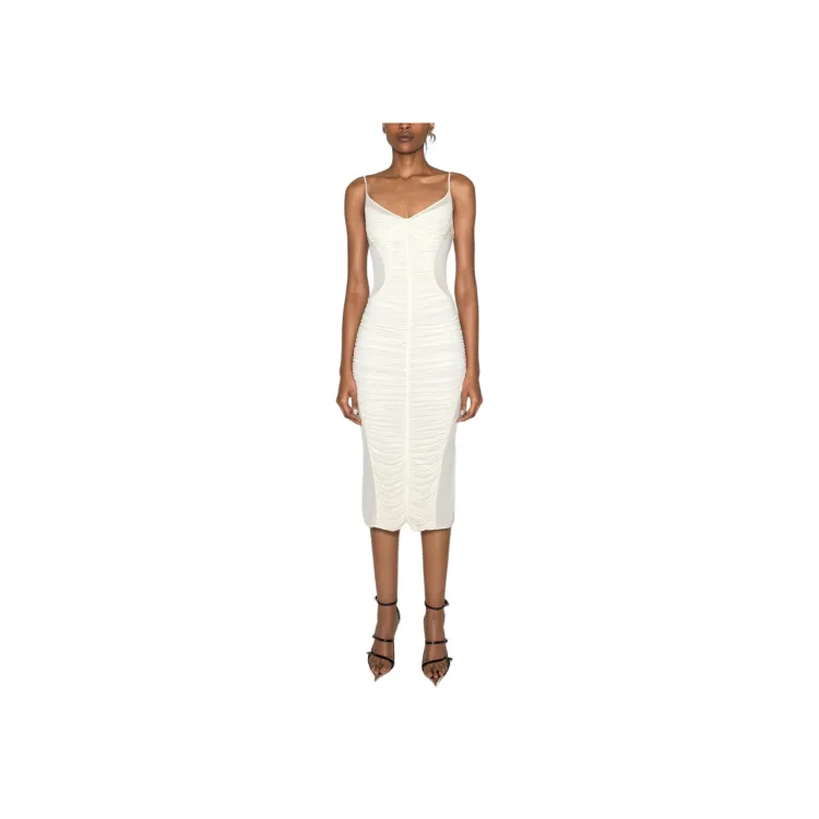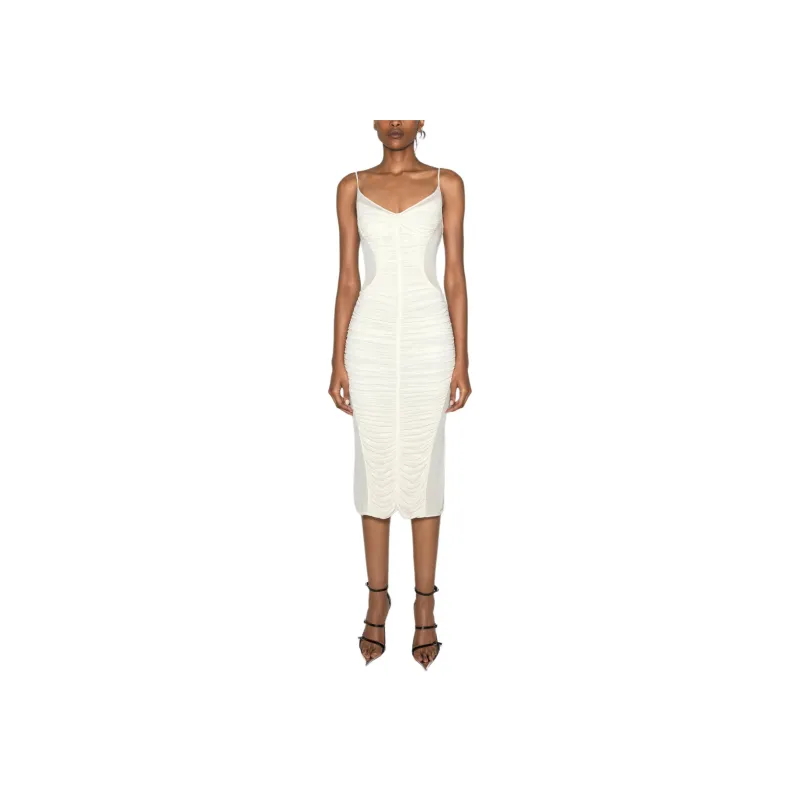 Mugler SS25 Белый Платье с Рюшами Slip Платье Женское Белое