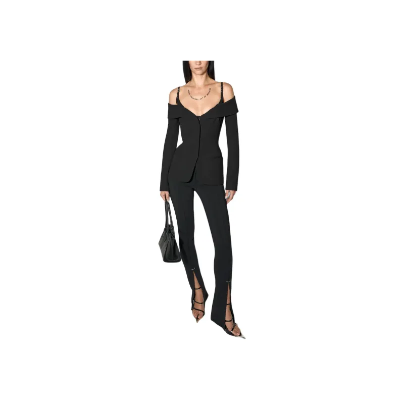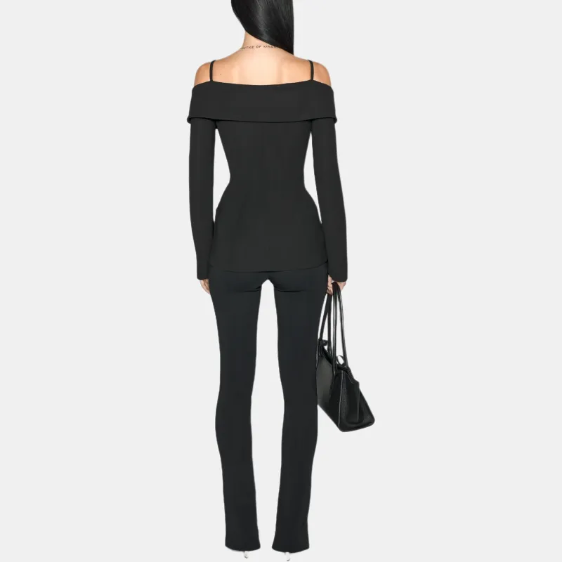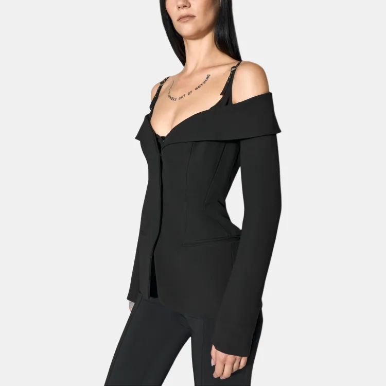Mugler SS25 Черный Sculptural Off Плечо Куртка Куртки Пальто Женские Черный