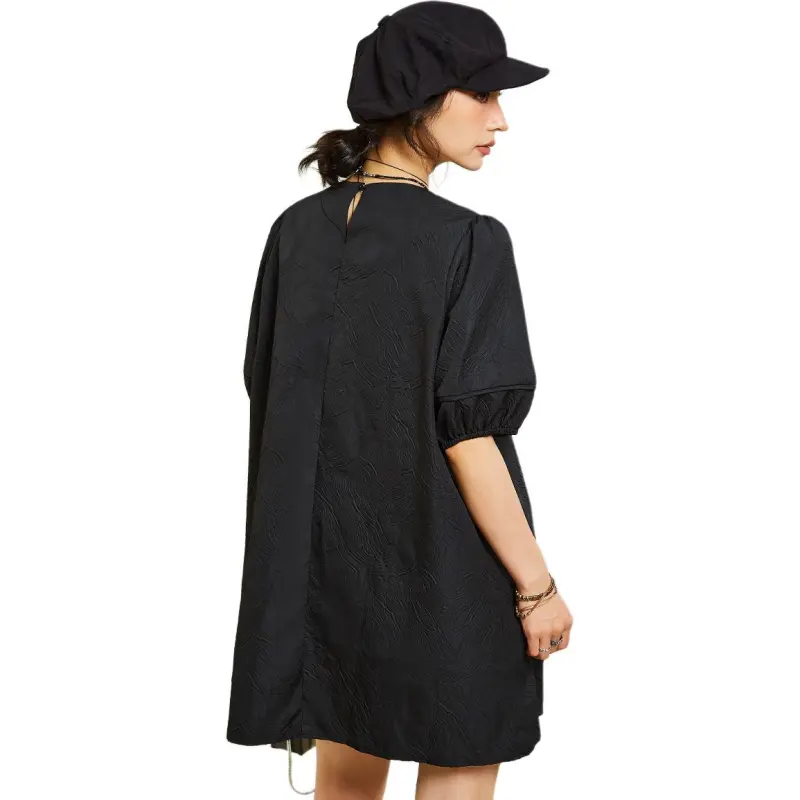 MUGUOGUOMU Короткий рукав Платье Женское Черное