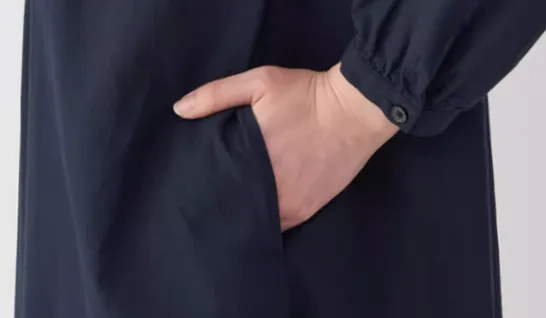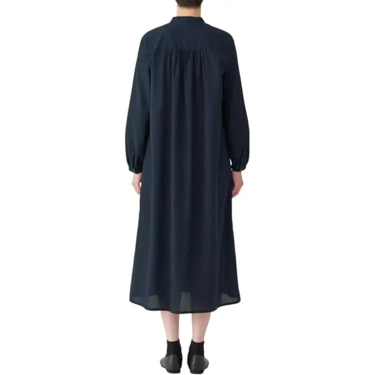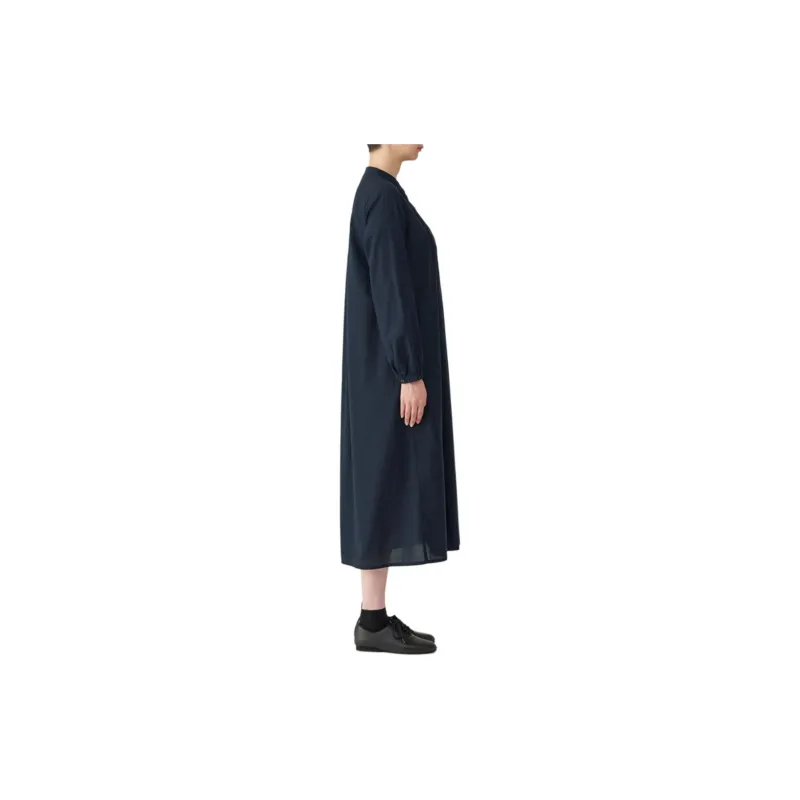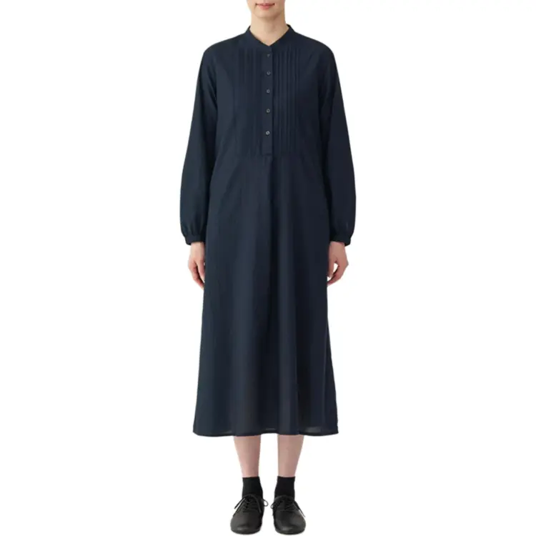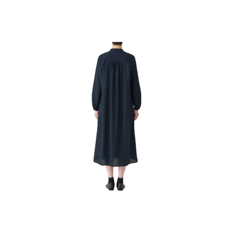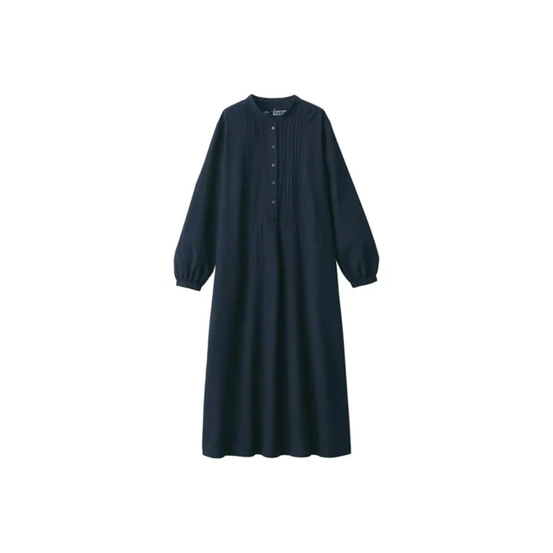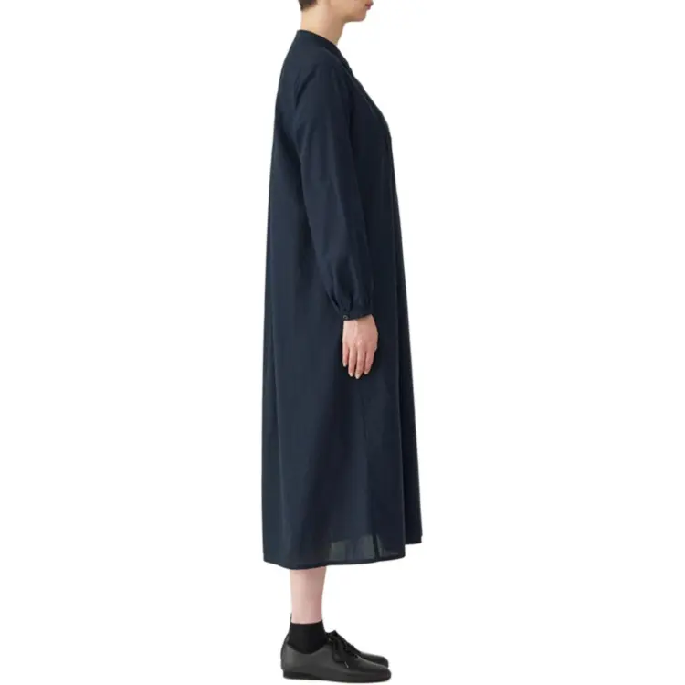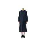 MUJI Длинное платье с длинными рукавами женское темно-синий