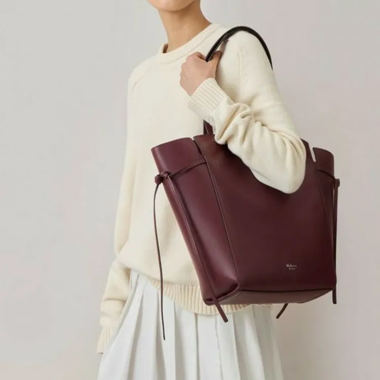 Mulberry Телячья кожа Тоут Сумка Сумка для покупок Сумка Сумка через плечо Женская Черная Вишня